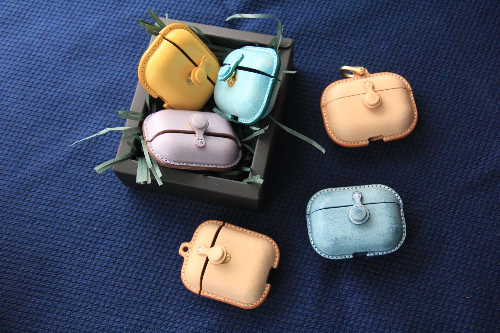 Handmade Green&Yellow Leather AirPods Pro Case Leather AirPods Case Airpod Case Cover