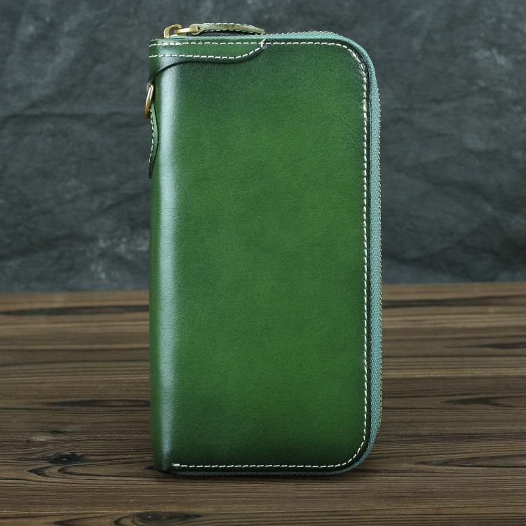 Green Mens Leather Cards Long Wallets Lot of Cards Black Zipper Long Wallet Cards Wallet for Men