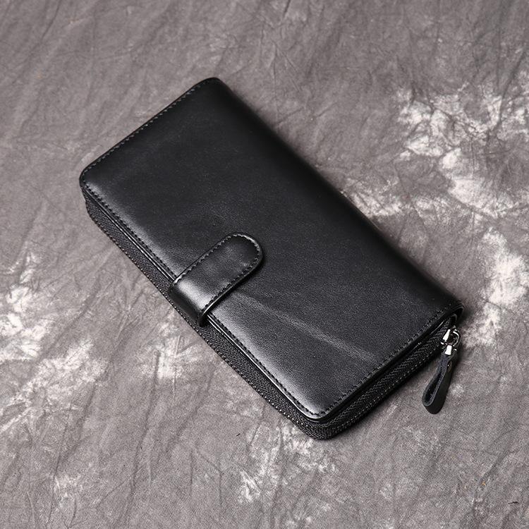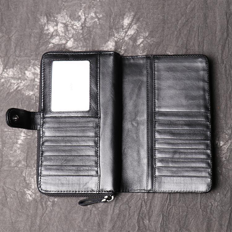 Vintage Mens Zipper Around Leather Long Wallets Bifold Zipper Long Wallets for Men