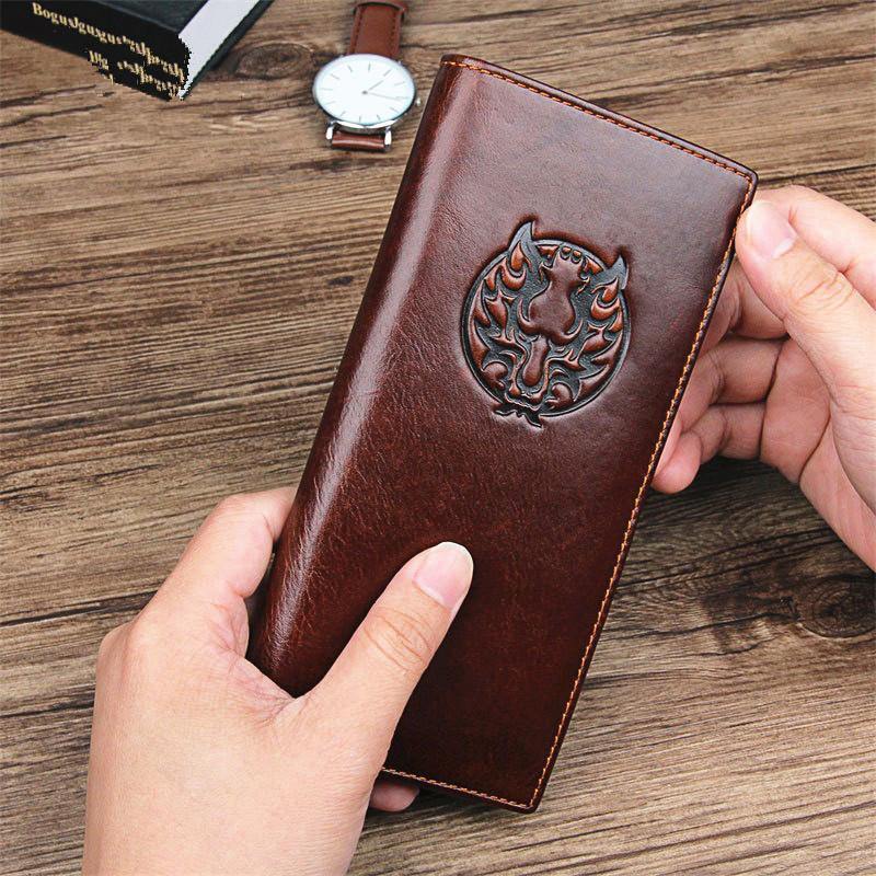 Brown Leather Long Wallet for Men Bifold Checkbook Wallet Card Holders Wallet For Men