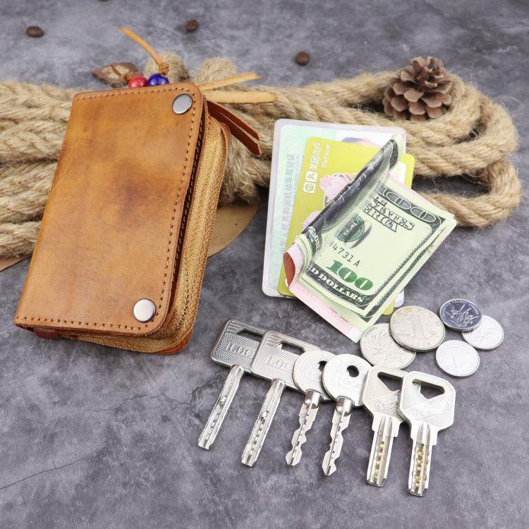 Brown Leather Key Case Key Wallet Men's Dark Coffee Key Holder Red Card Holder For Men
