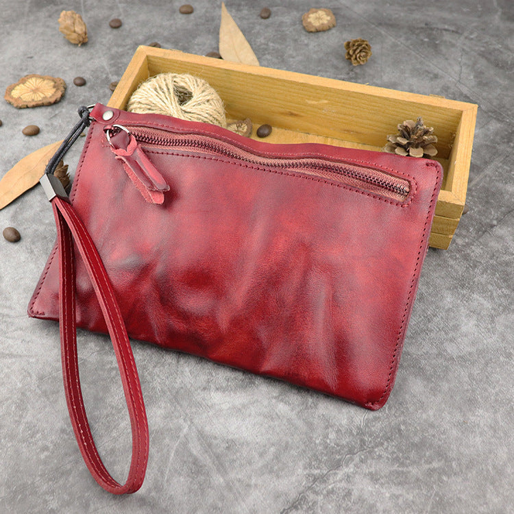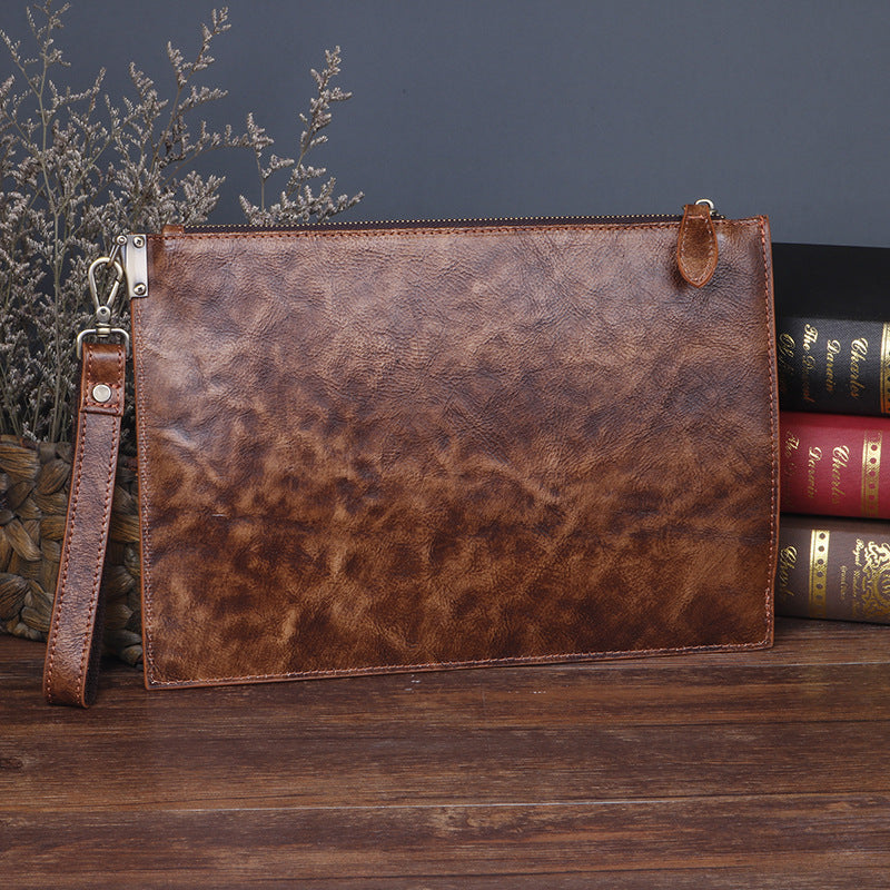 Retro Soft Leather Brown Men's Business Black Clutch Bag Purse Large Red Wristlet Bag For Men
