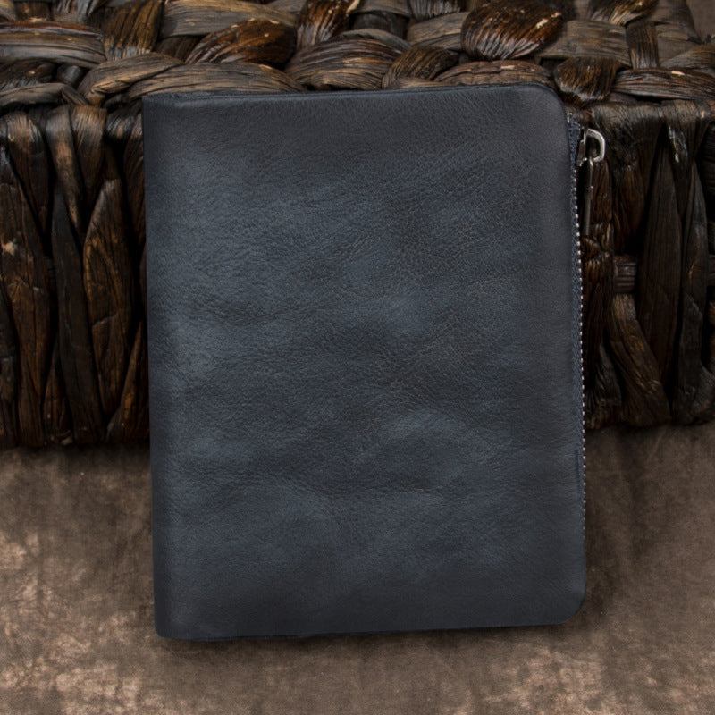 Cool Leather Brown Men's Zipper Blue billfold Small Wallet Trifold Wallet Card Wallet For Men
