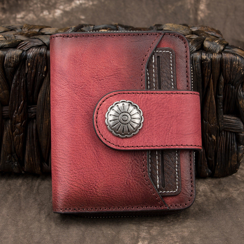 Brown Small Bifold Wallet Leather Womens billfold Small Wallet Zipper Red Card Wallet For Men