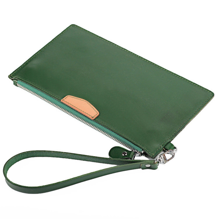 Oiled Leather Men's Yellow Ultra Slim Wristlet Wallet Zipper Multiple Purse Wallet Phone Bag For Men