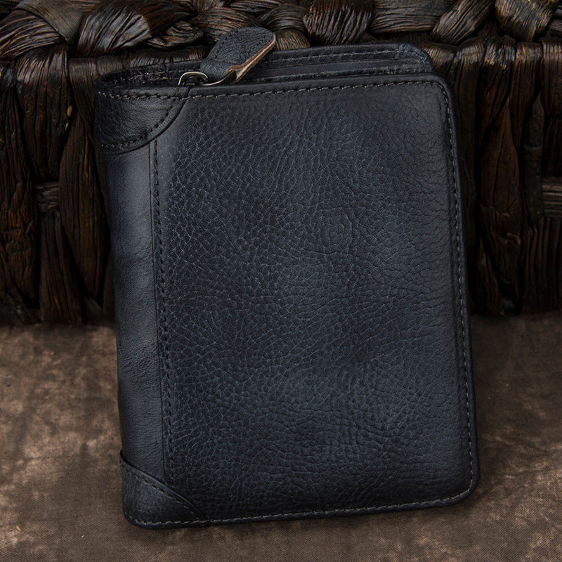Brown Vintage Bifold Wallet Leather Mens billfold Small Wallet Zipper Small Wallet For Men