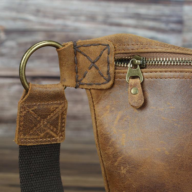 Style: Badass Leather Fanny Pack Men's Brown Chest Bag Hip Bag 8 inches Waist Bag For Men