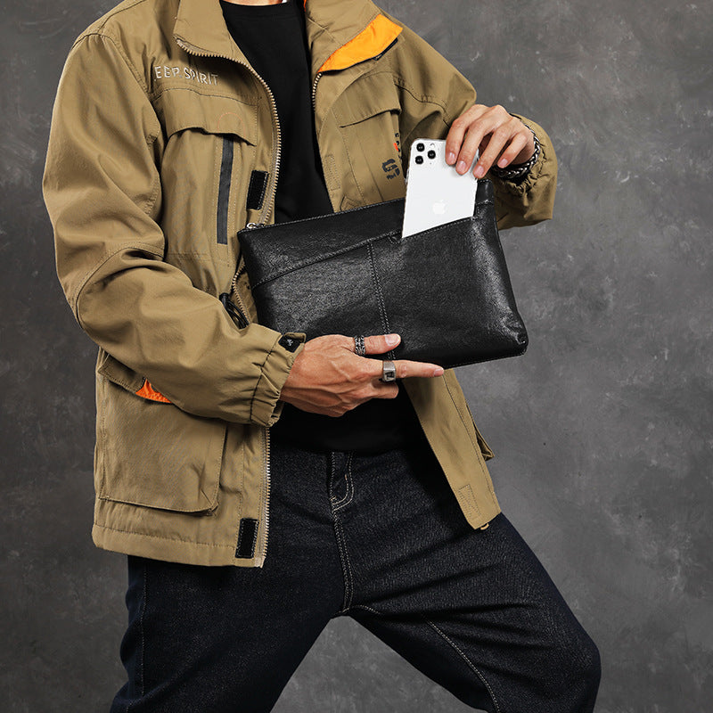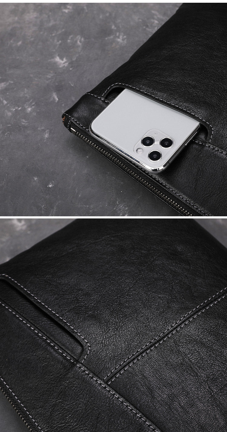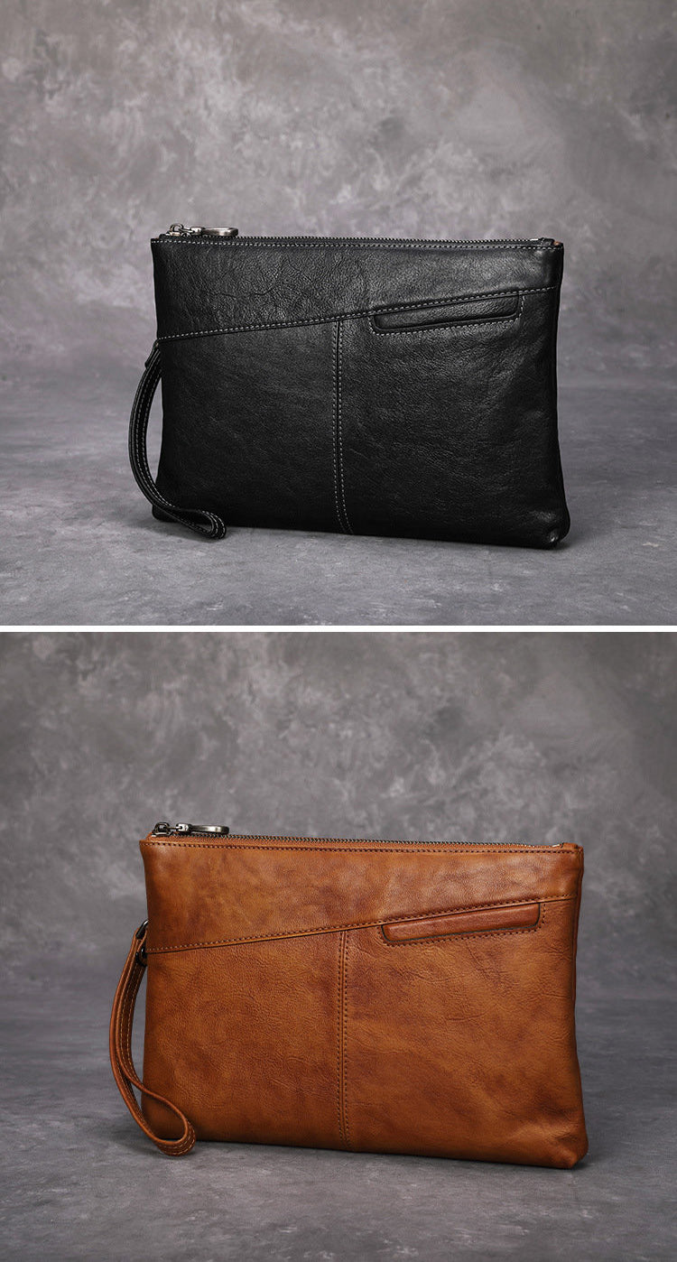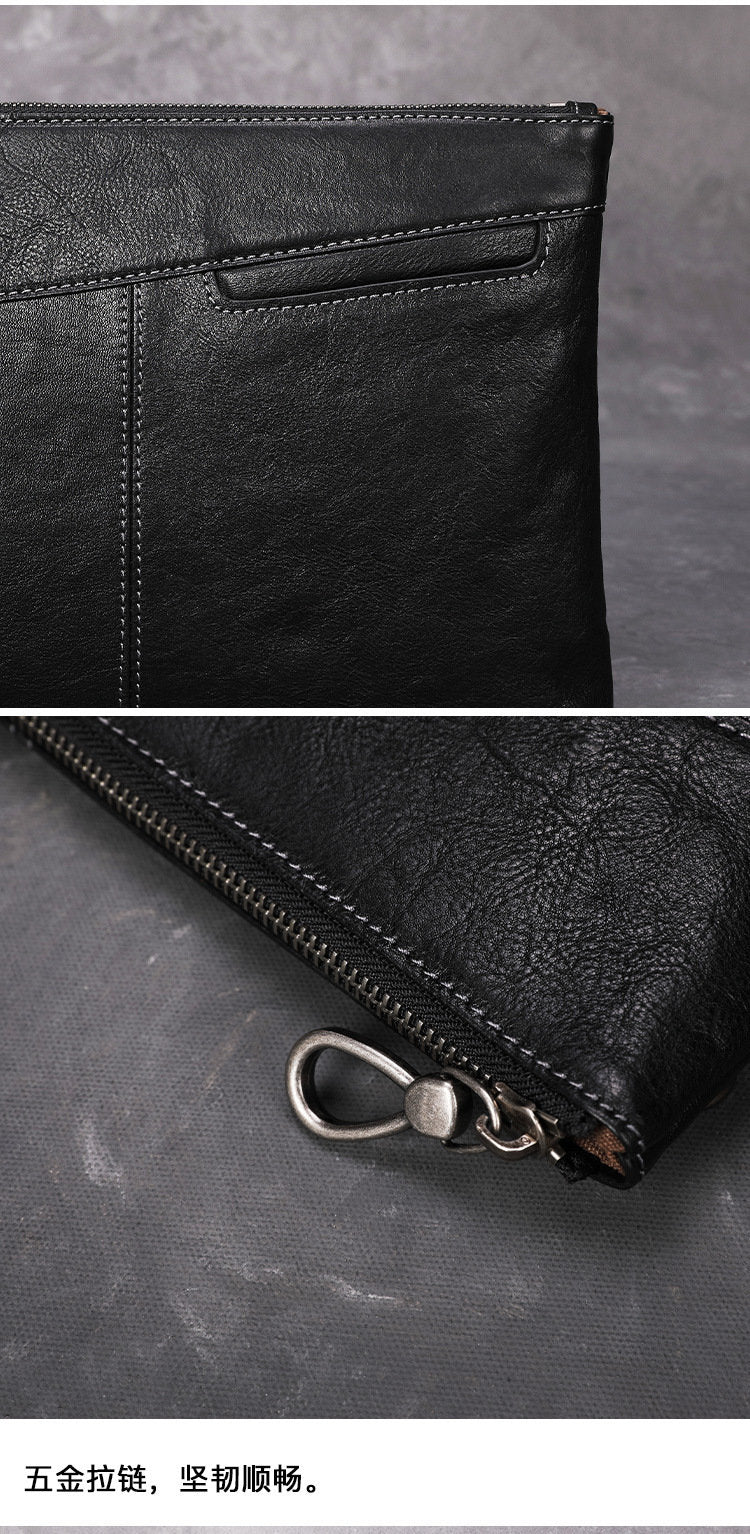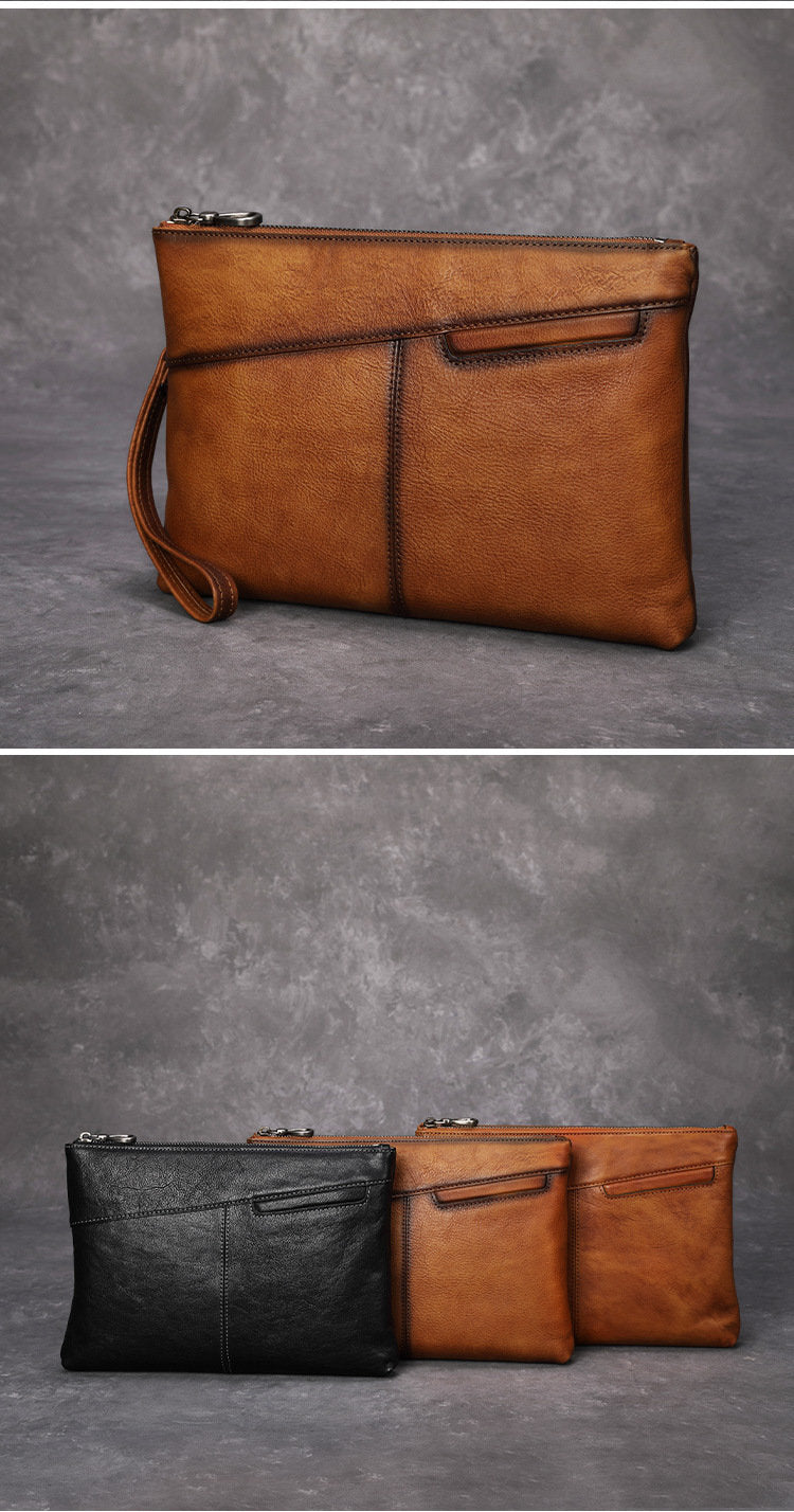 Design: Leather Mens Wristlet Wallet Vintage Clutch Bag Zipper Clutch Purse for Men