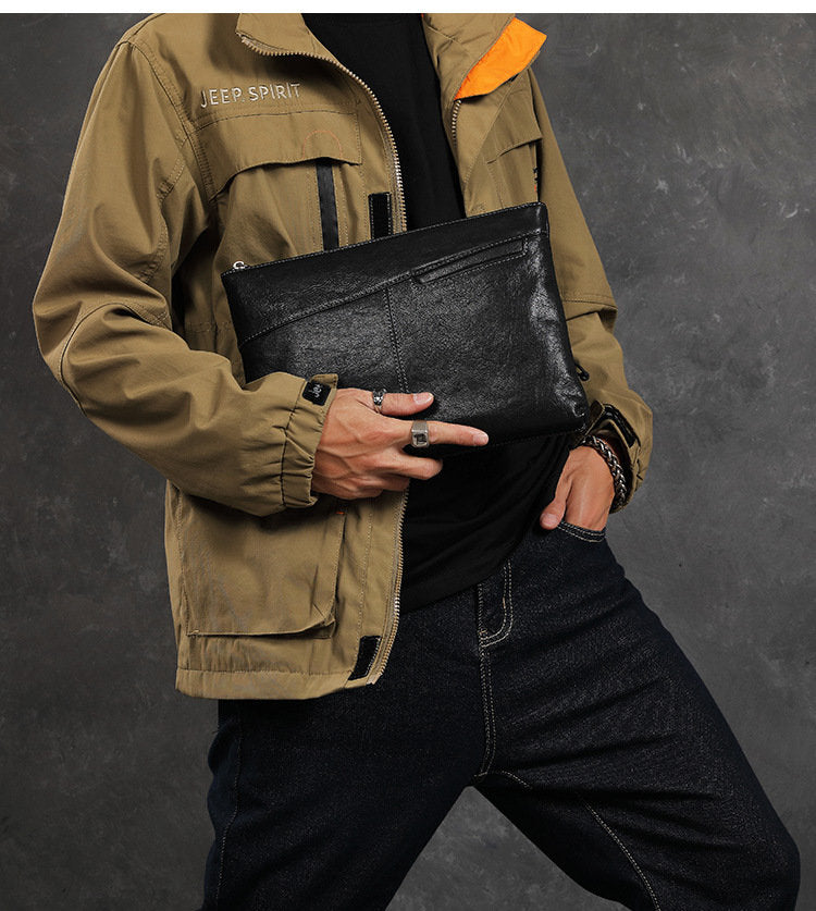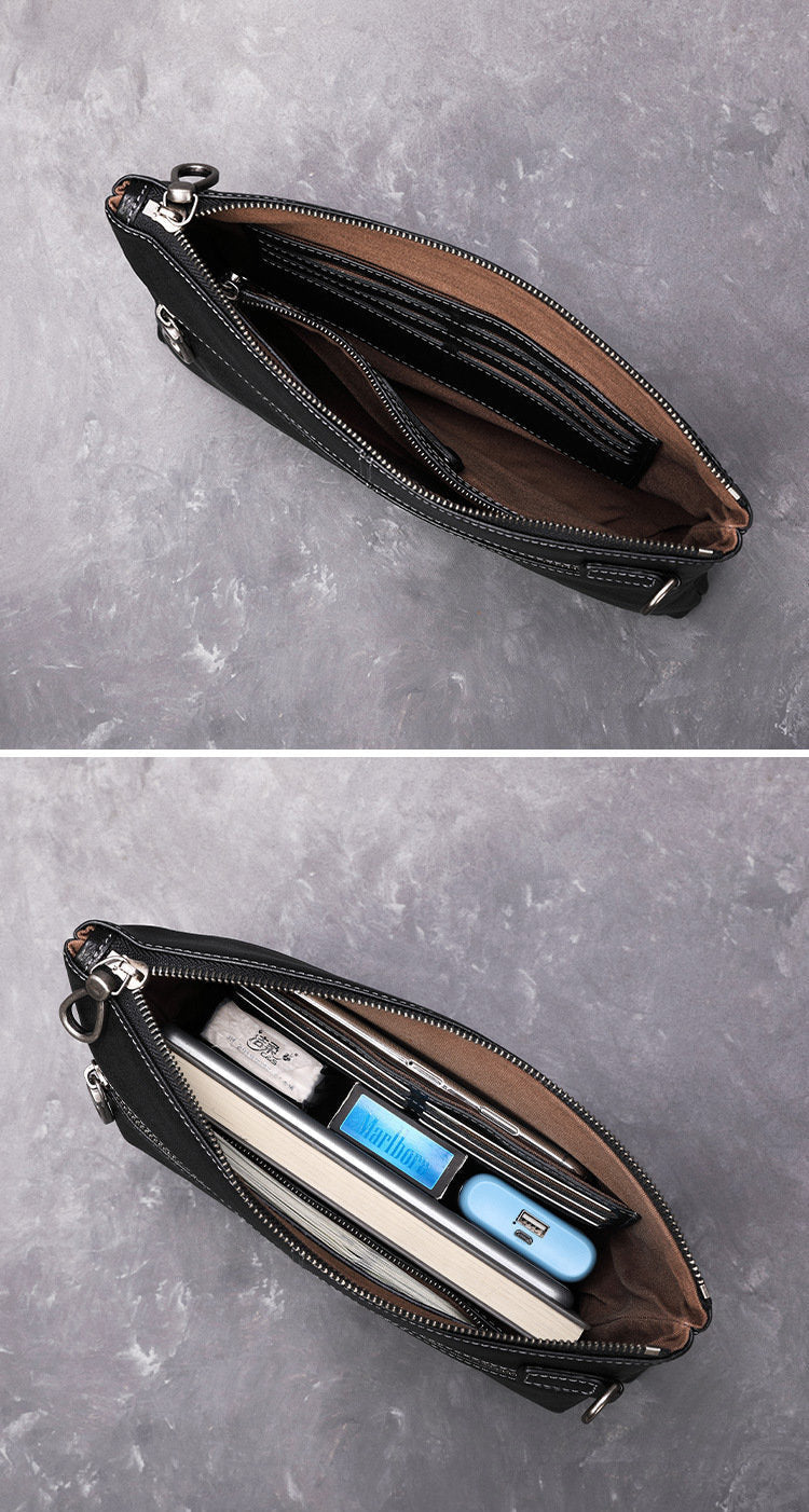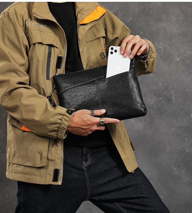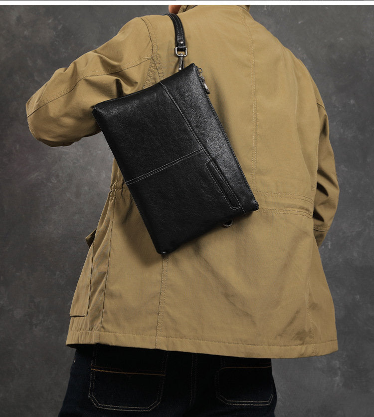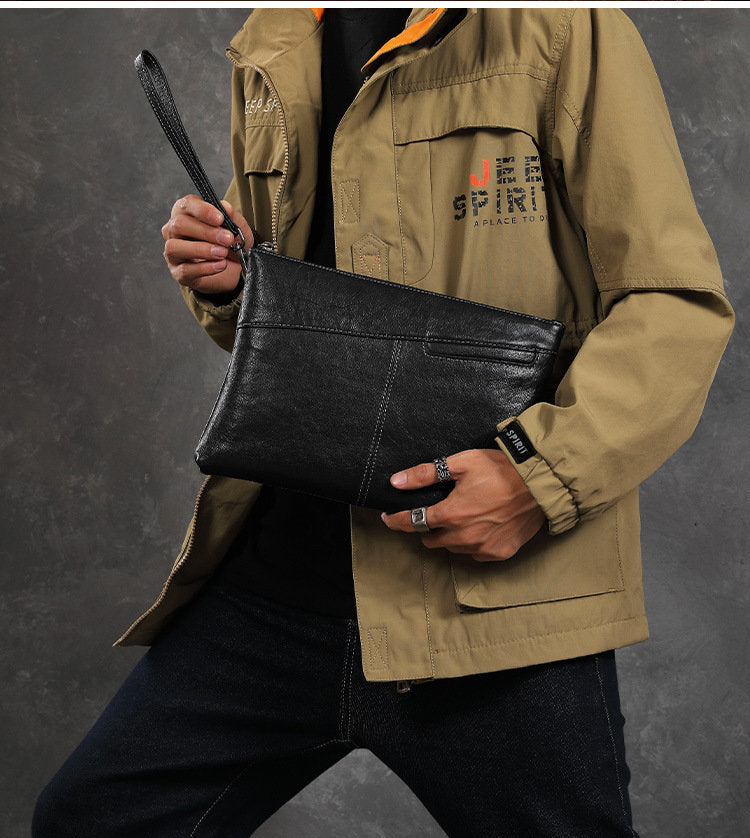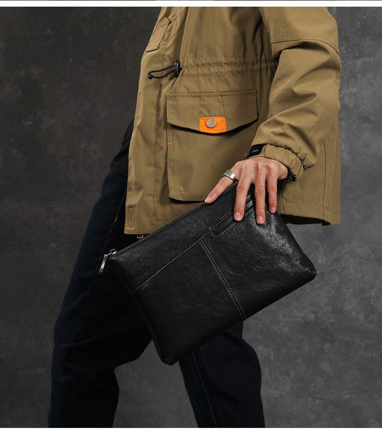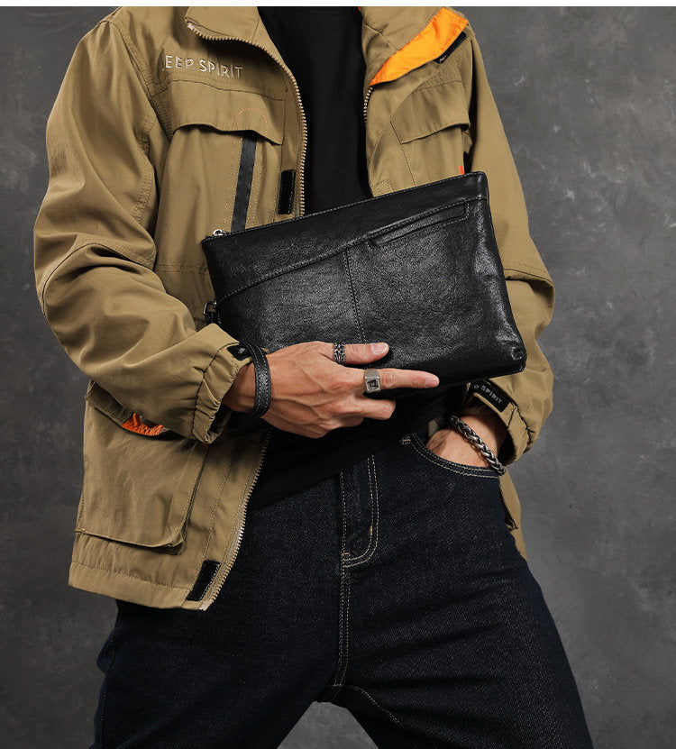 Design: Leather Mens Wristlet Wallet Vintage Clutch Bag Zipper Clutch Purse for Men