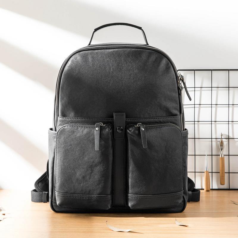 Black Fashion Mens Leather 15-inch Computer Backpacks Black Travel Backpacks College Backpack for men – uleather