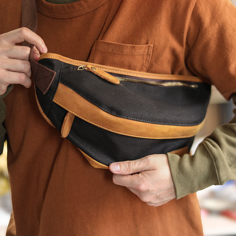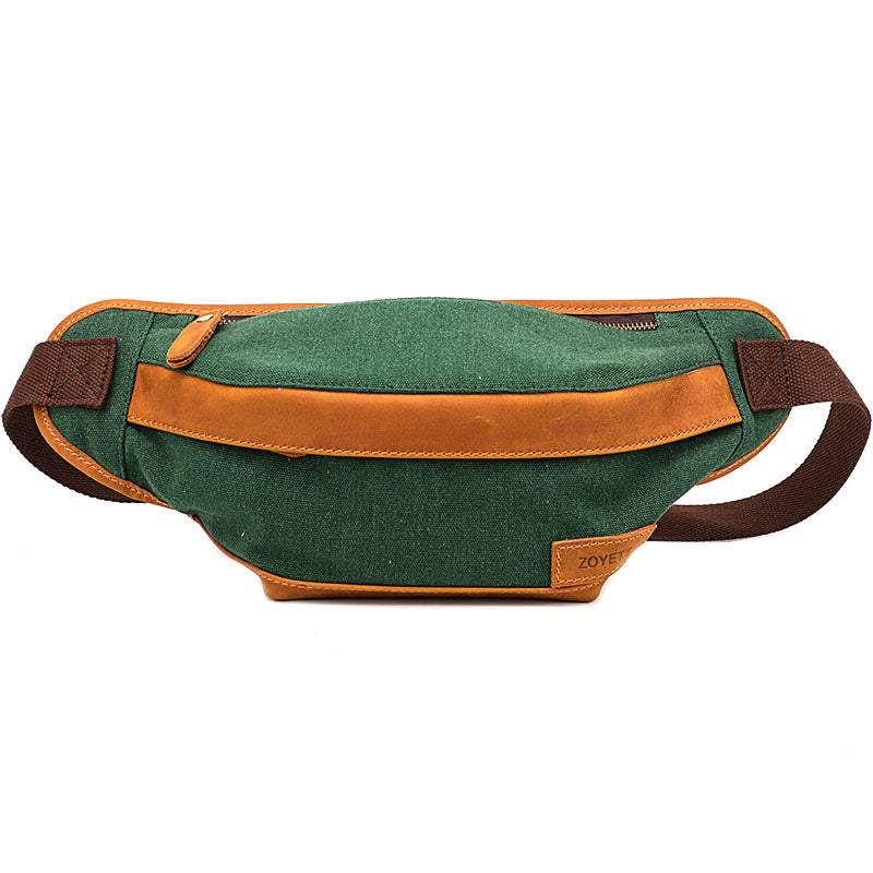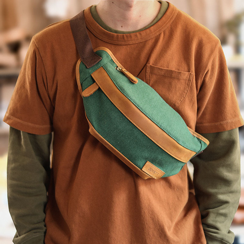 Cool Canvas Leather Mens Chest Bag Green Waist Bag Fanny Pack Hip Bag Bum Pack For Men – uleather