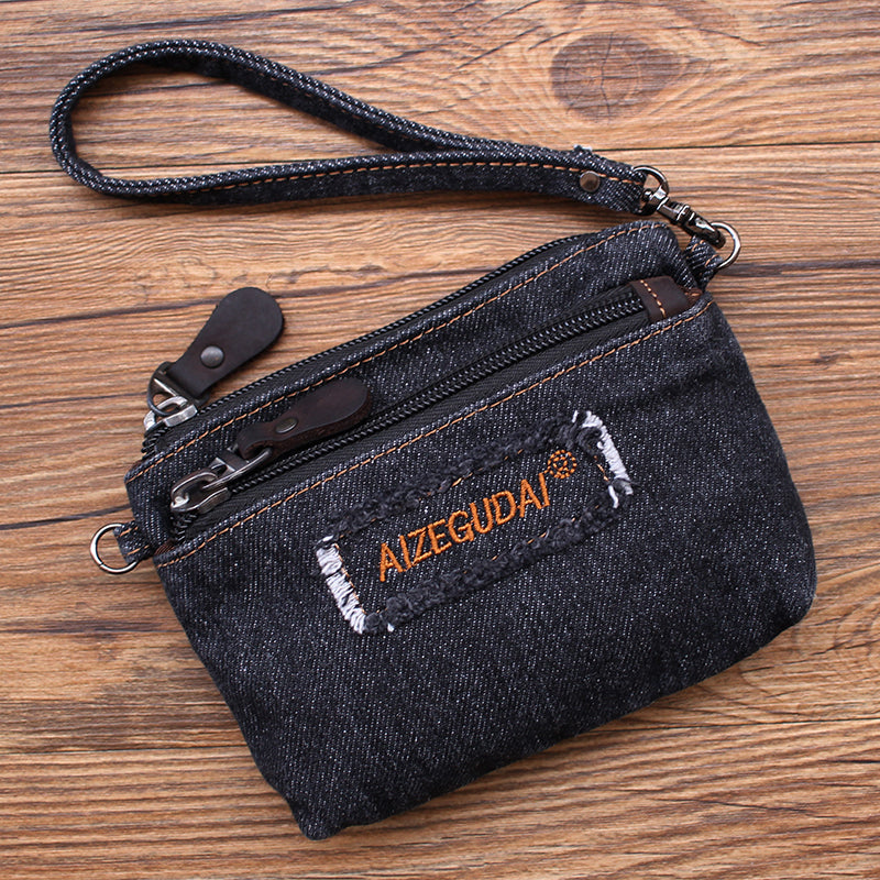 Black Denim Womens Mini Shoulder Bags Keys Coin Wallet Crossbody Bag Denim Wirstlet Purse – uleather