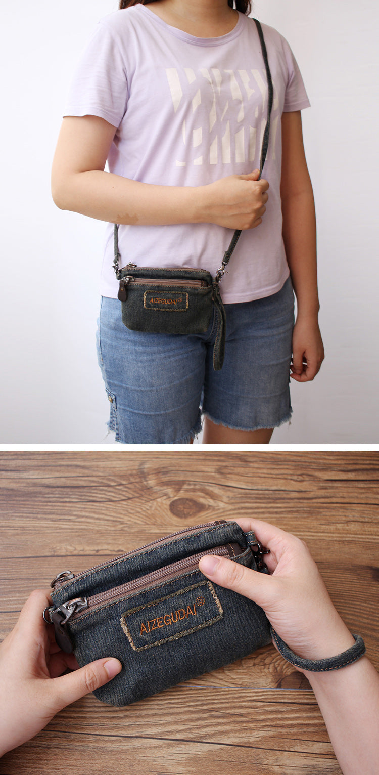Style: Denim Womens Mini Shoulder Bags Keys Coin Wallet Crossbody Bag Denim Wirstlet Purse