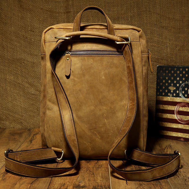 Coffee Cool Mens Leather 13-inch Computer Backpack Brown Satchel Backpacks School Backpacks for men – uleather