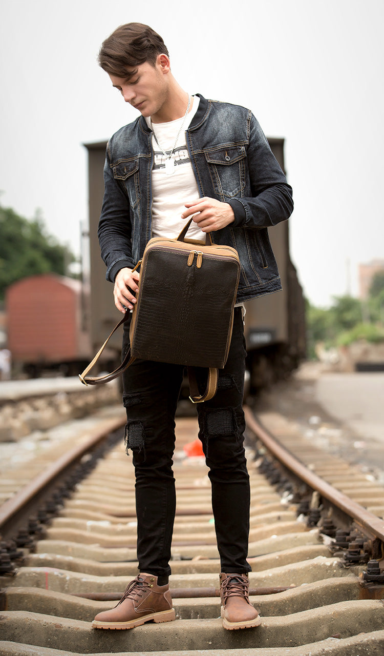 Design: Black Fashion Mens Leather 13-inch Computer Backpack Brown Satchel Backpacks School Backpacks for men