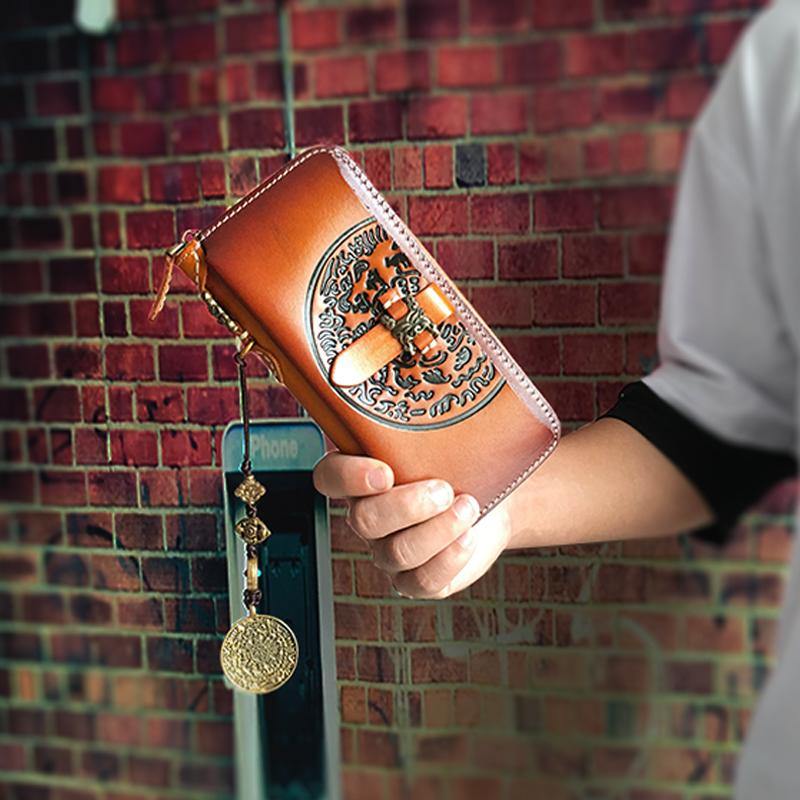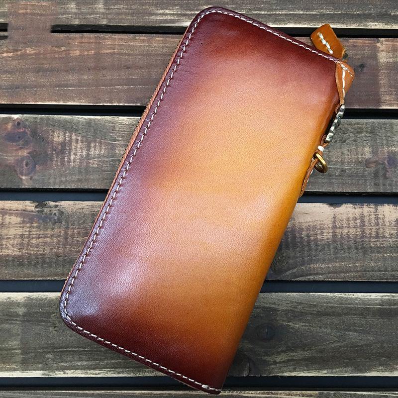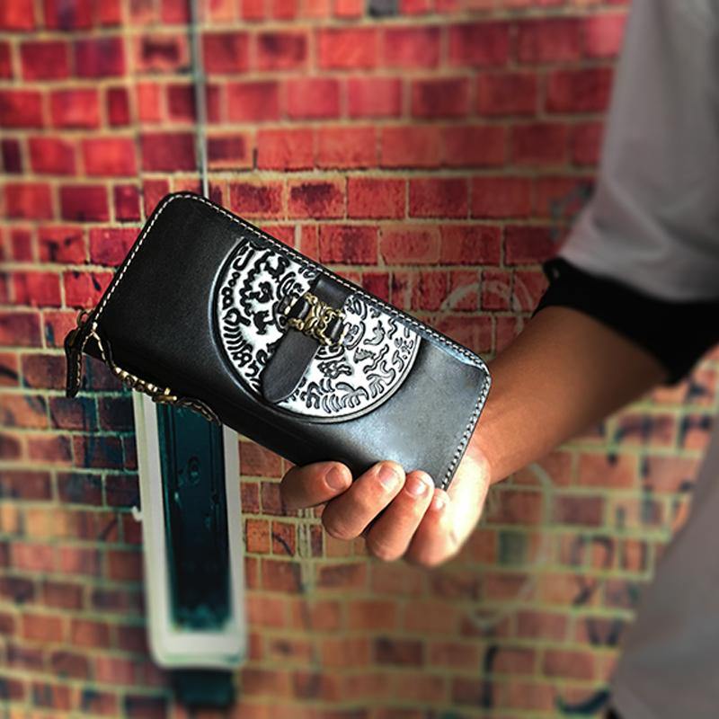 Brown Handmade Tibet Tooled Leather Long Biker Wallet Black Chain Wallet Clutch Wallet For Men – uleather