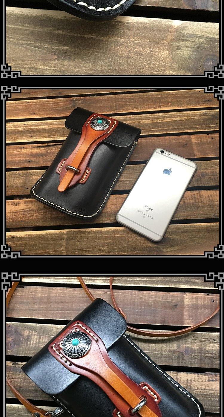 Design: Handmade Black Leather Waist Bag Belt Bag Small Messenger Bag Side Bags For Men