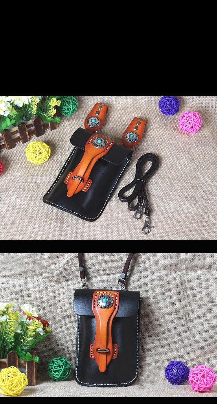Style: Handmade Black Leather Waist Bag Belt Bag Small Messenger Bag Side Bags For Men
