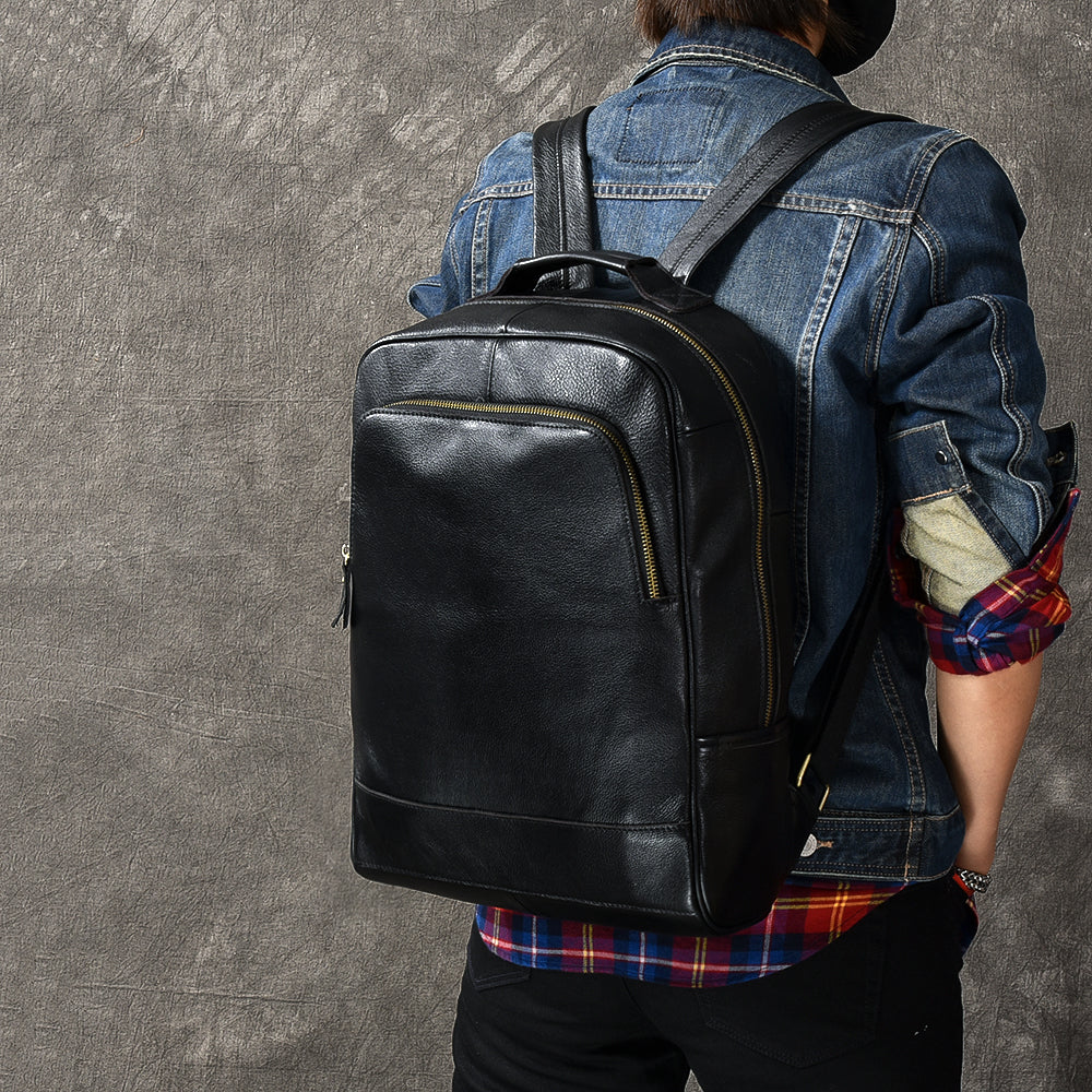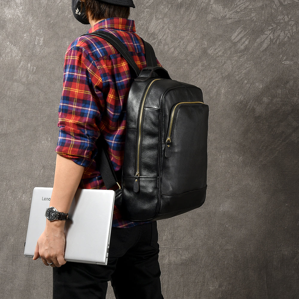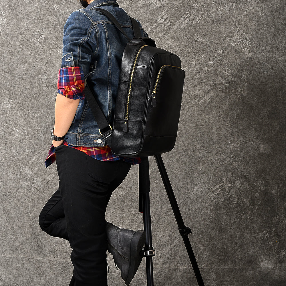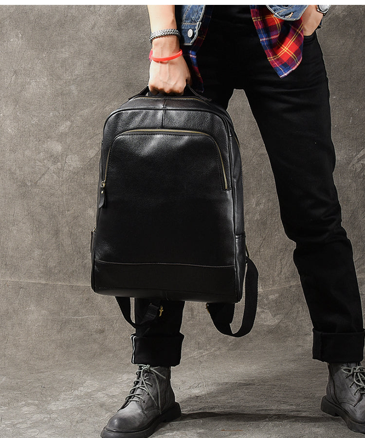 Black Leather Mens 15' Laptop Backpack Hiking Backpack Travel Backpack College Backpack for Men – uleather