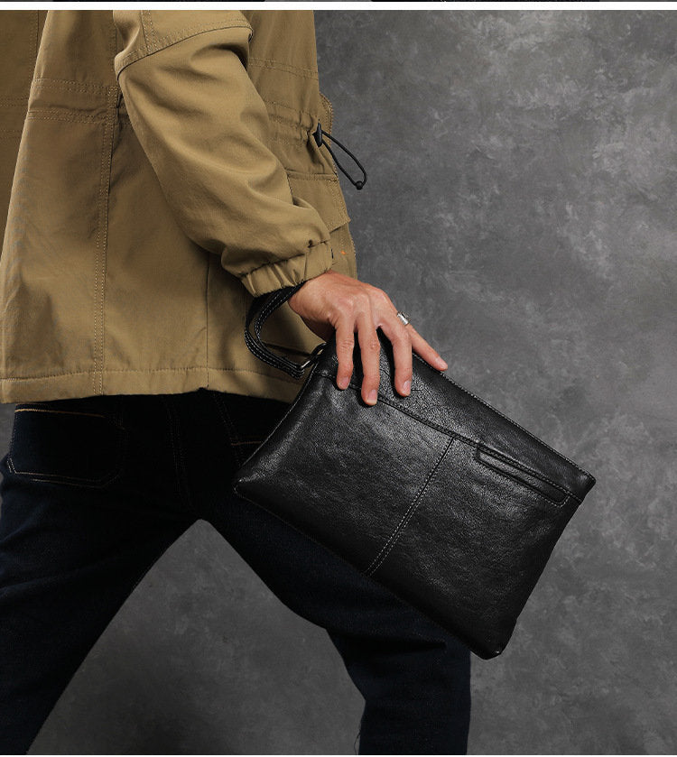 Design: Leather Mens Wristlet Wallet Vintage Clutch Bag Zipper Clutch Purse for Men