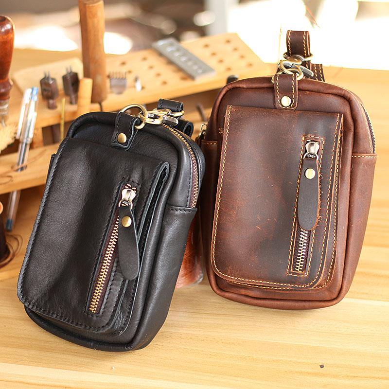 Black Vintage Leather Mens Belt Pouch Belt Bag Hip Pouch Waist Bags Dark Brown For Men