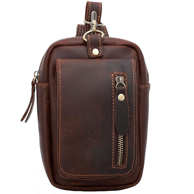 Design: Black Vintage Leather Mens Small Messenger Bag Waist Bags Dark Brown Belt Pouch Bag For Men