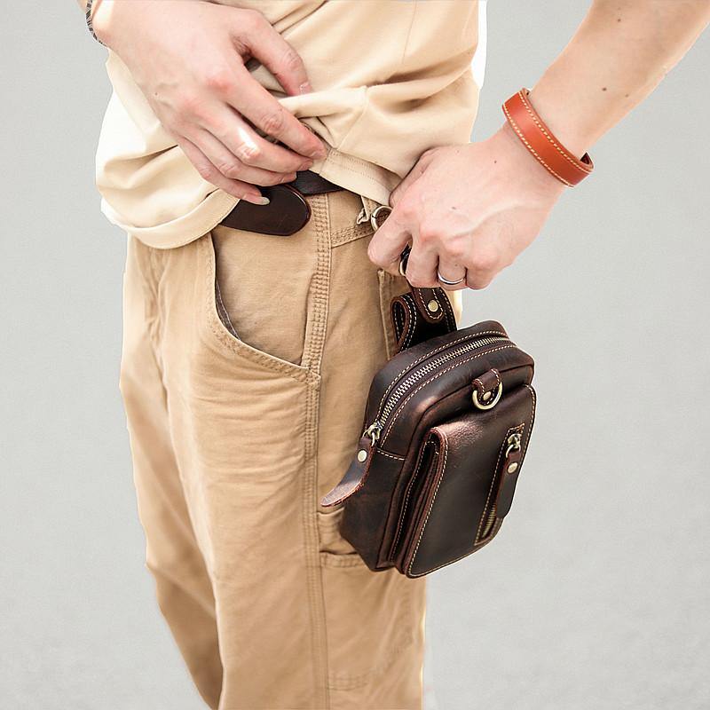 Style: Black Vintage Leather Mens Small Messenger Bag Waist Bags Dark Brown Belt Pouch Bag For Men