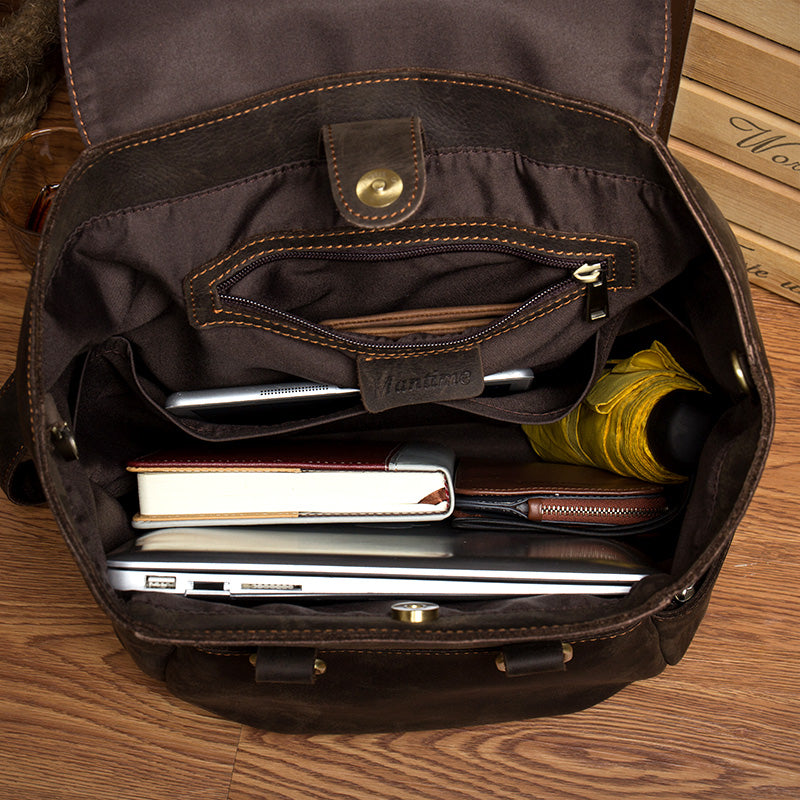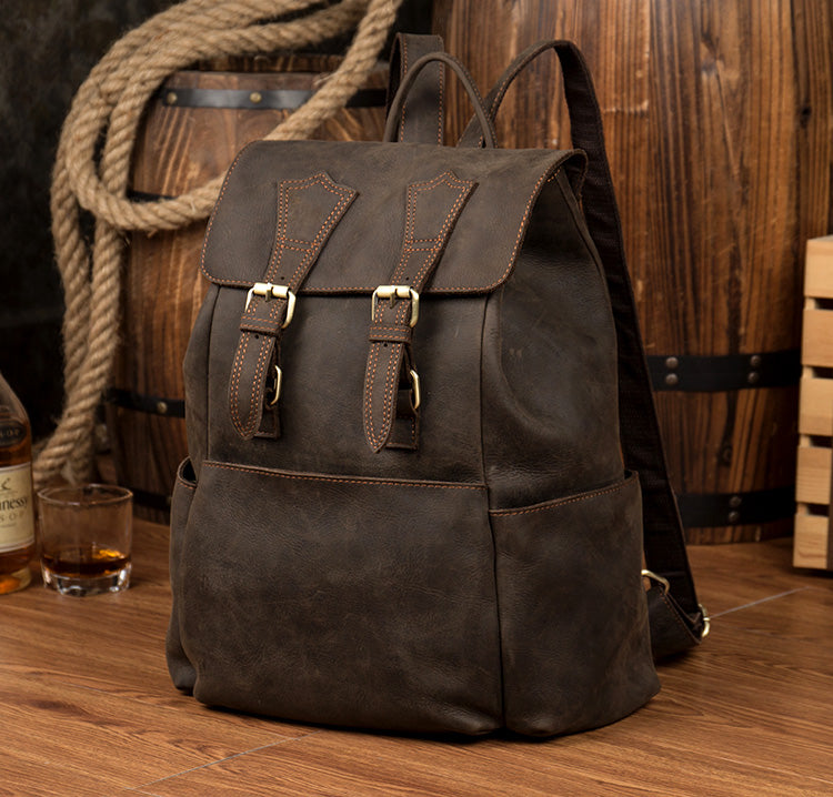 Brown Mens Leather 15 inches Computer Backpacks Black Cool Travel Backpacks Laptop School Backpack for men – uleather