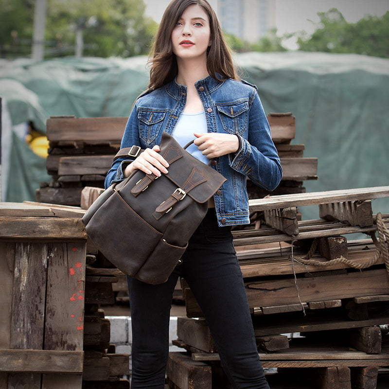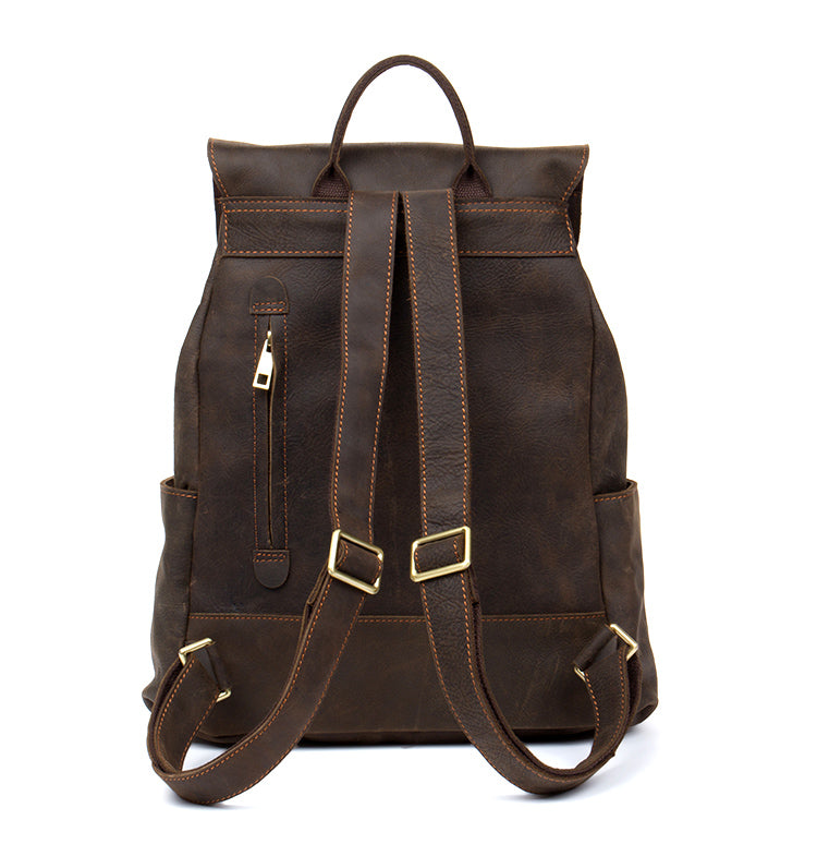 Brown Mens Leather 15 inches Computer Backpacks Black Cool Travel Backpacks Laptop School Backpack for men