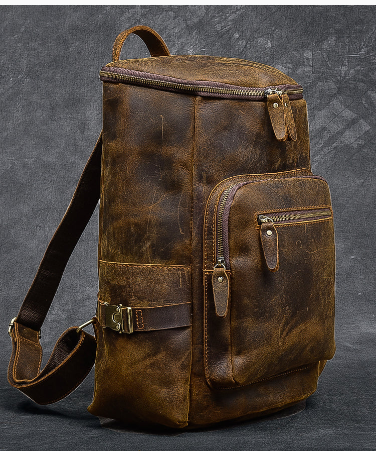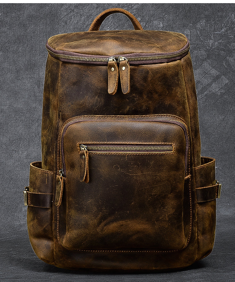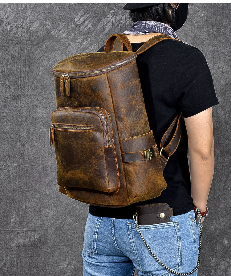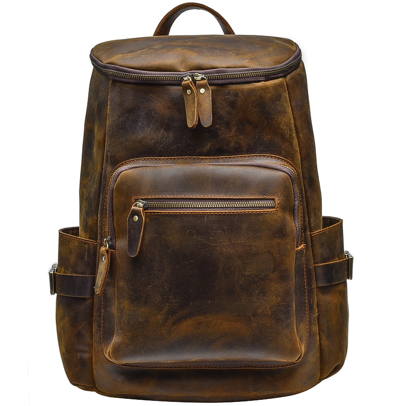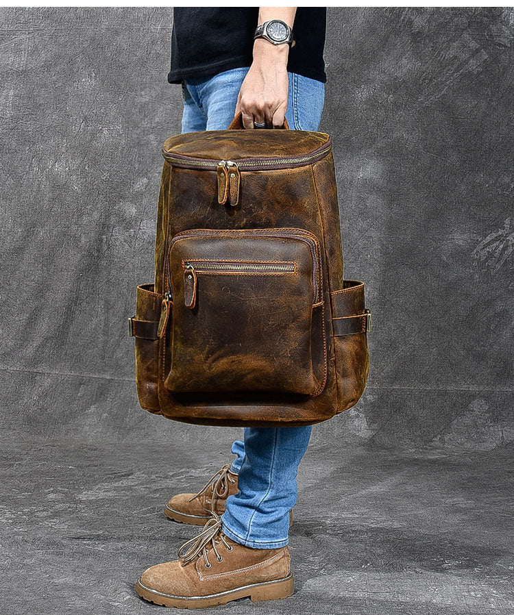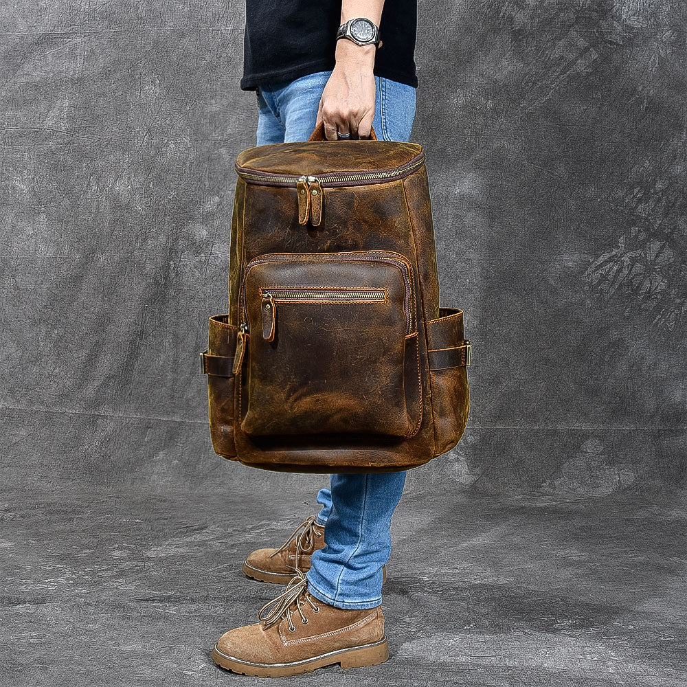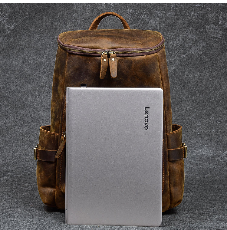 Brown Leather Mens 14' Laptop Large Backpack Hiking Backpack Travel Backpack College Bag for Men – uleather