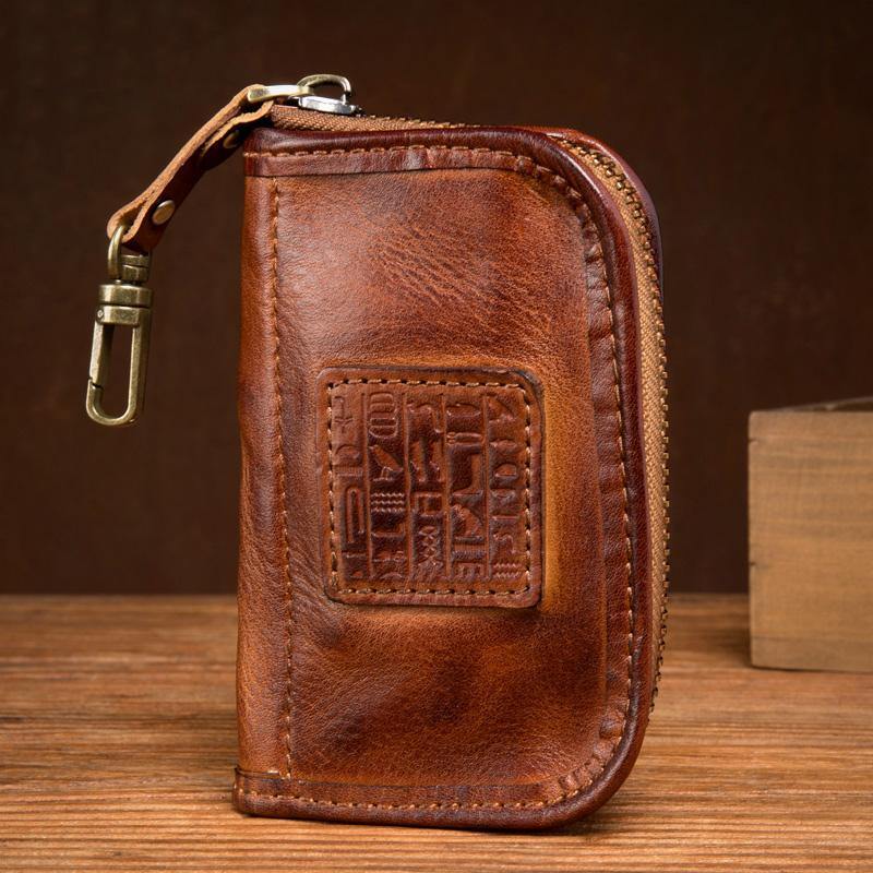 Brown Leather Mens Small Car Key Wallet Brown Key Holder Coin Purse Brown Card Holder For Men – uleather