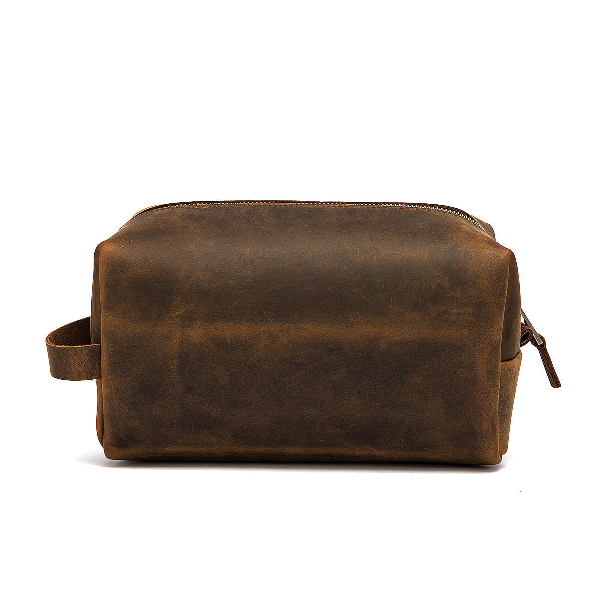 Brown Leather Men's Toiletry Bag Small Roomy Dopp Kit Clutch Wash Kit & Shaving Bag for Bathroom Organizer – uleather