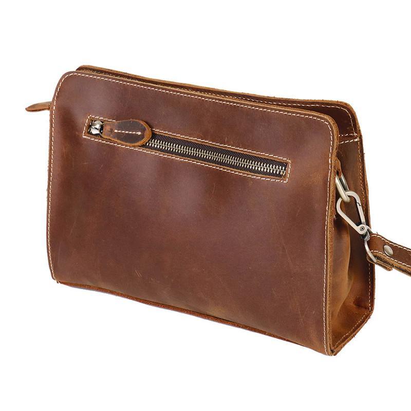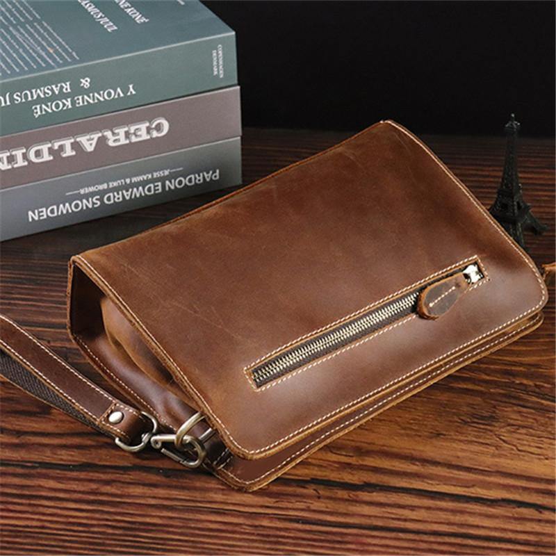 Vintage Brown Mens Clutch Wallet Leather Zipper Clutch Wristlet Purse Bag Clutch Bags For Men – uleather
