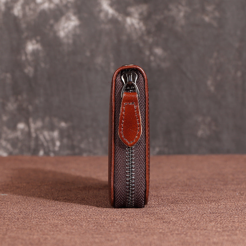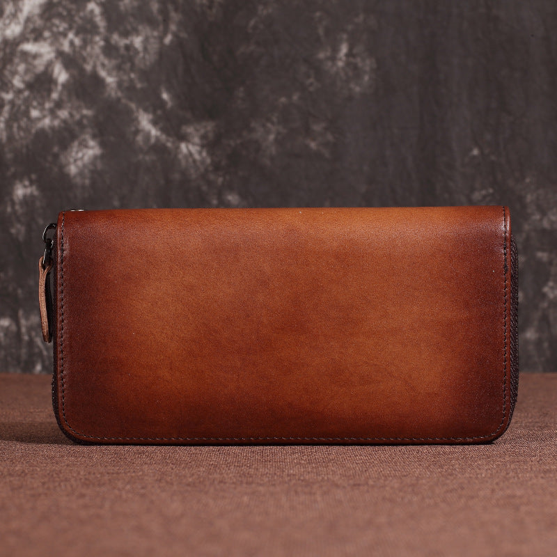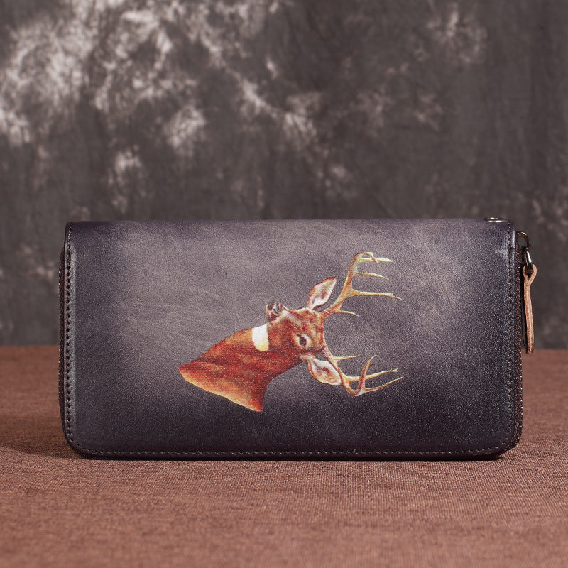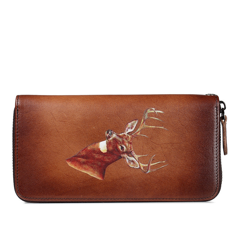 Brown Vintage Deer Wallet Leather Mens Womens Gray Long Wallet Zipper Clutch Wallet For Men – uleather