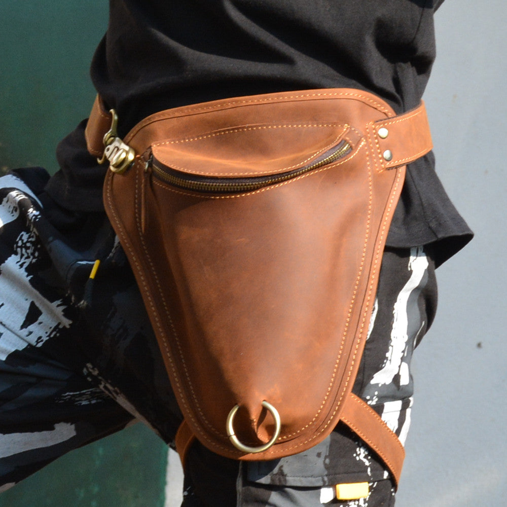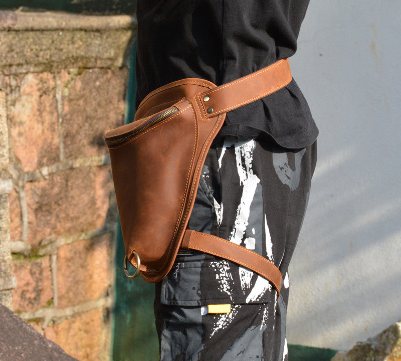 Cool Brown Leather Men's Belt Pouch Belt Bag Drop Leg Bag Waist Bag For Men – uleather