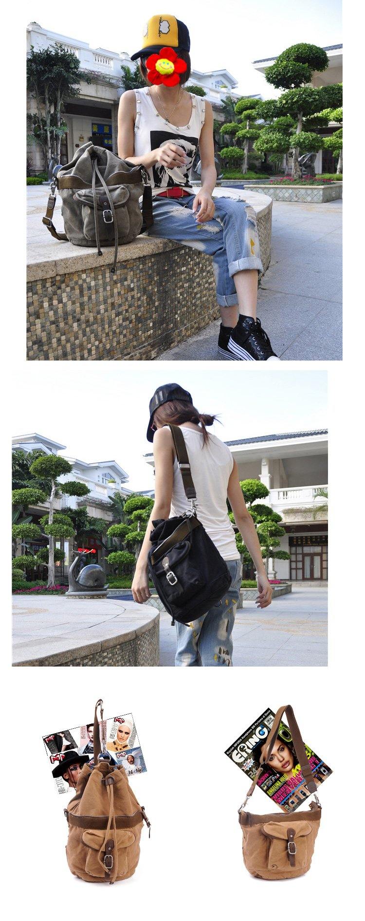 Style: Canvas Black Mens Barrel Sling Bag Green Chest Bag Side Bag Bucket One Shoulder Backpack For Men