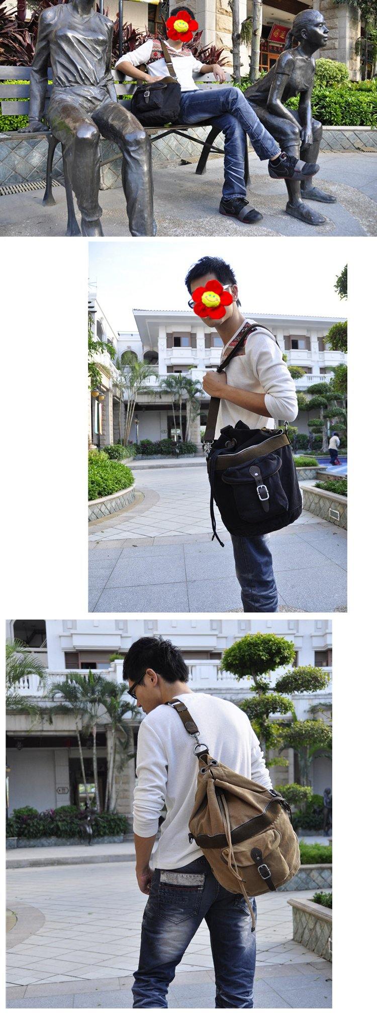 Design: Canvas Black Mens Barrel Sling Bag Green Chest Bag Side Bag Bucket One Shoulder Backpack For Men