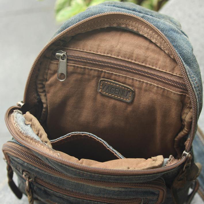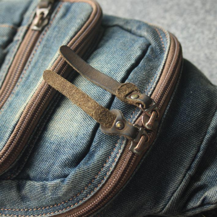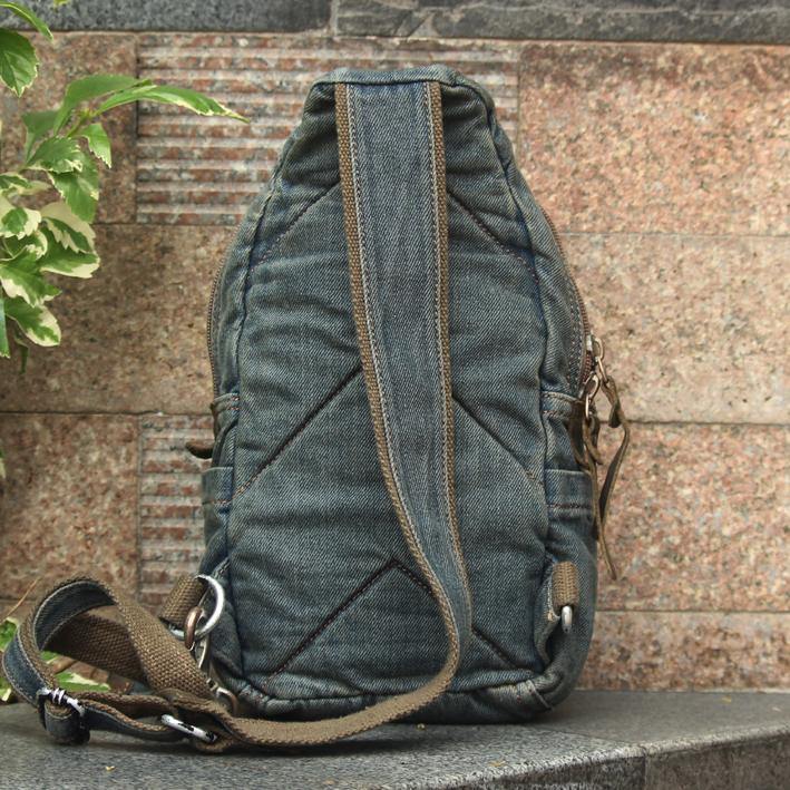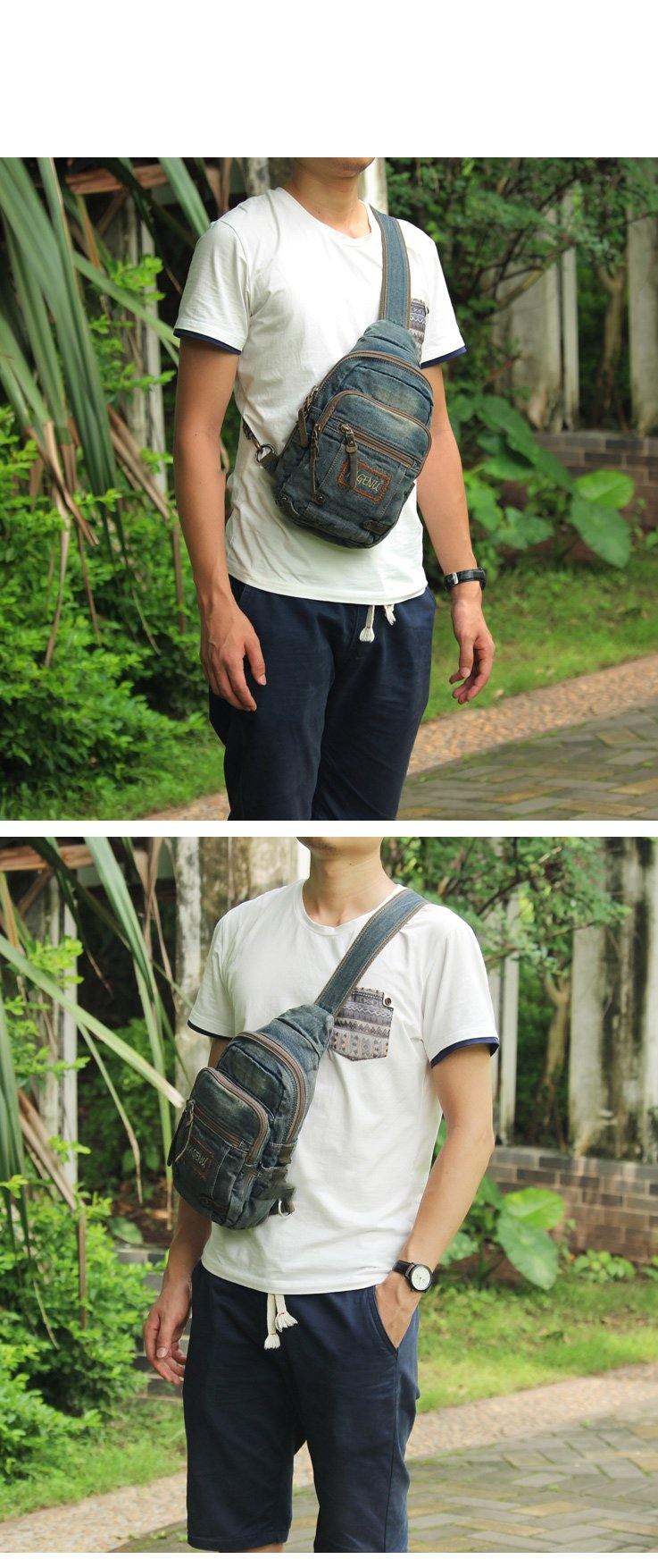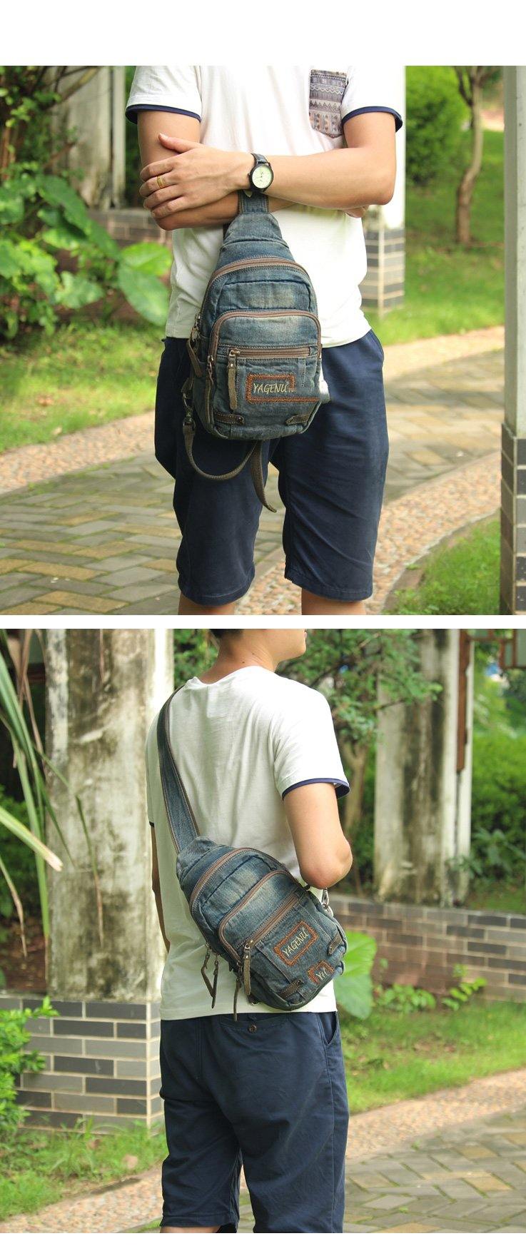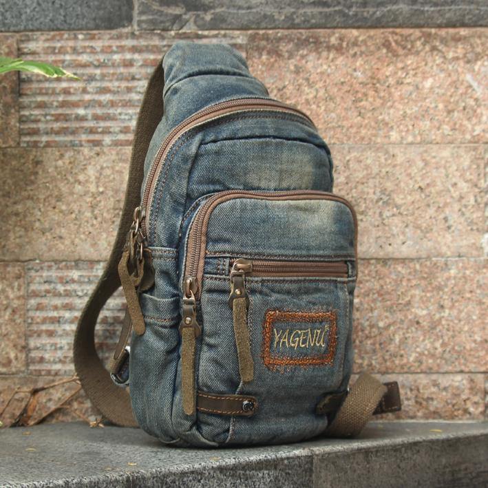 Style: Jean Vintage Blue Mens Sling Bag Chest Bags Jean One Shoulder Backpack For Men