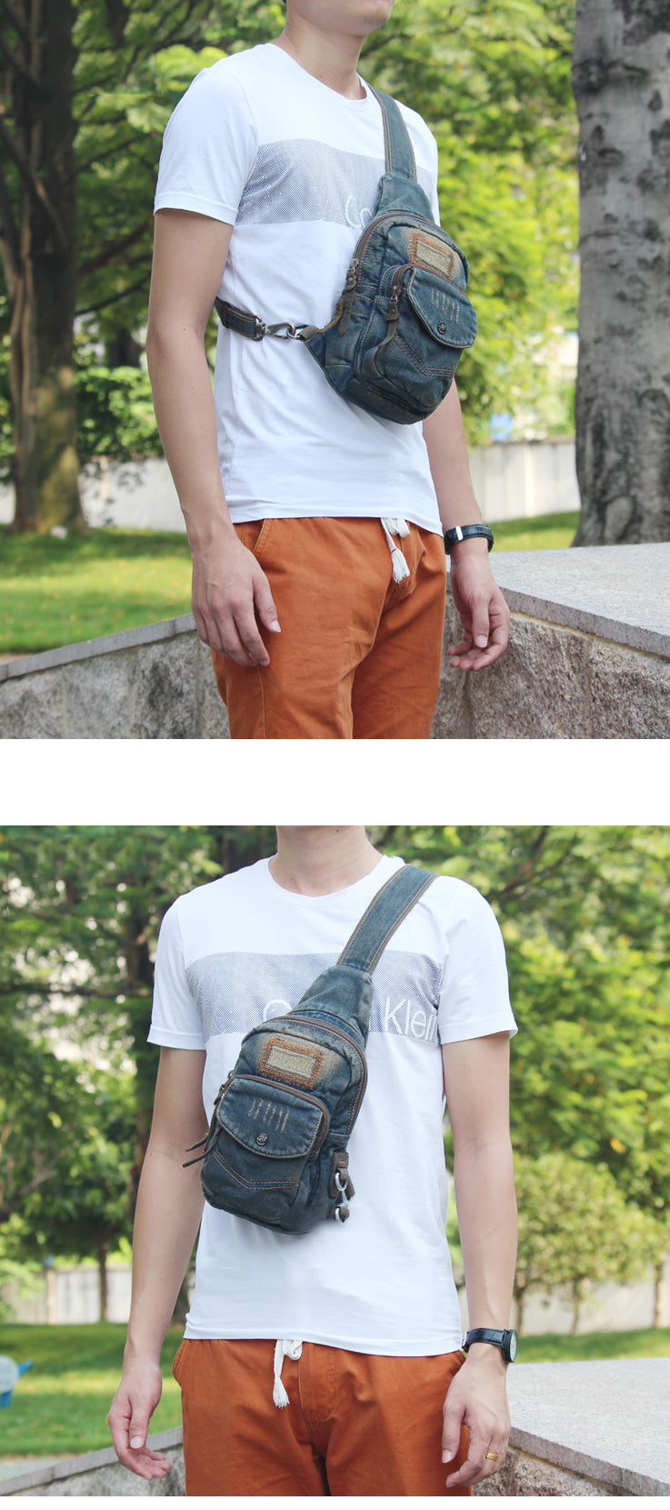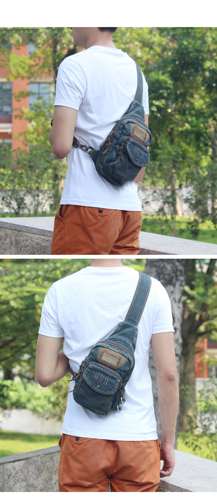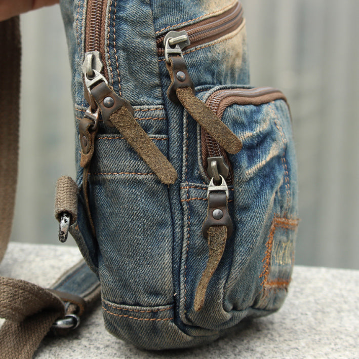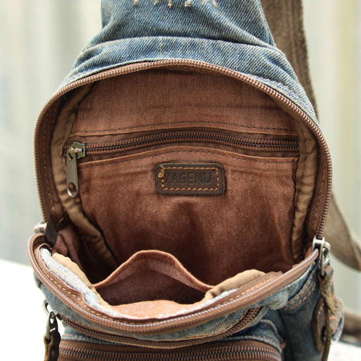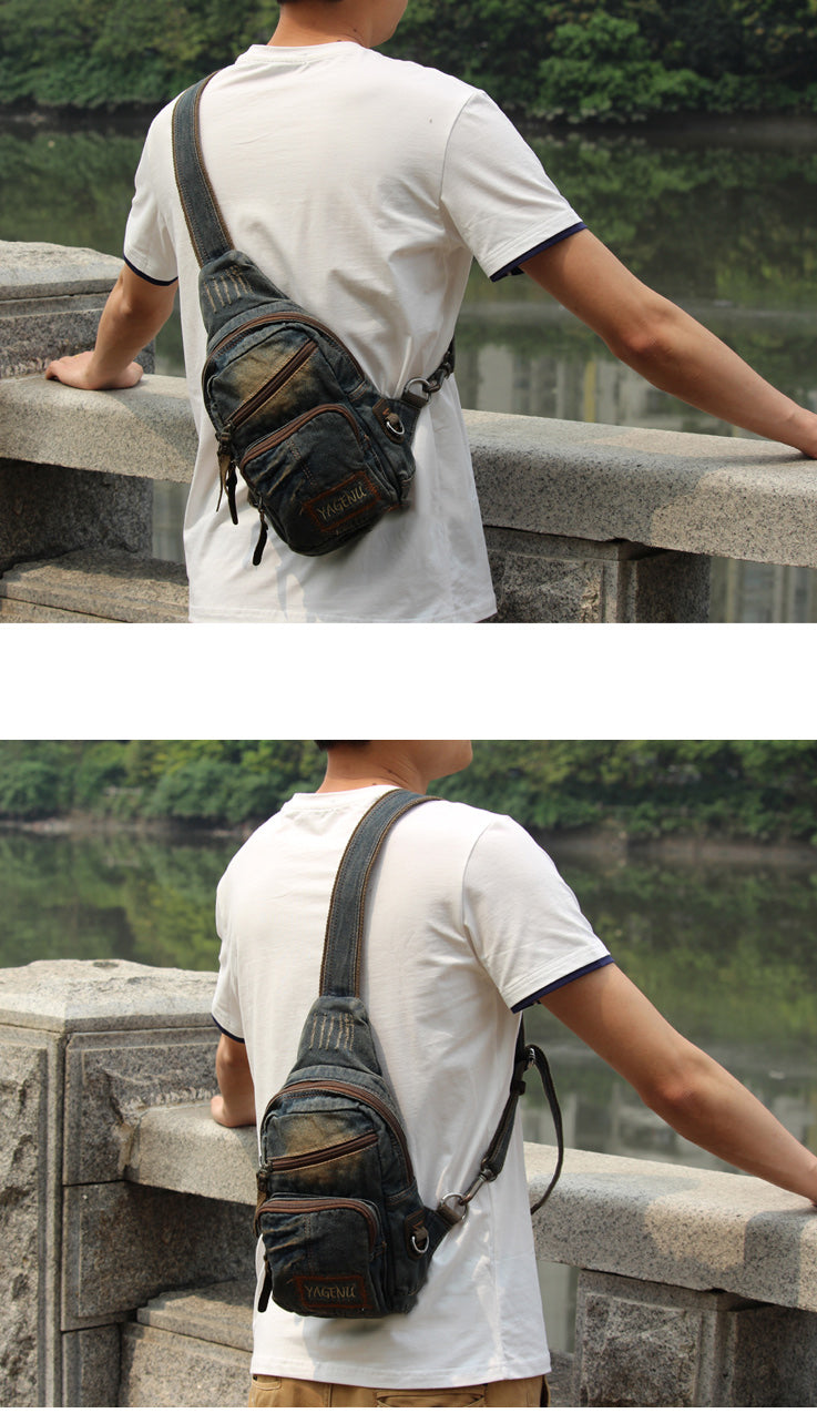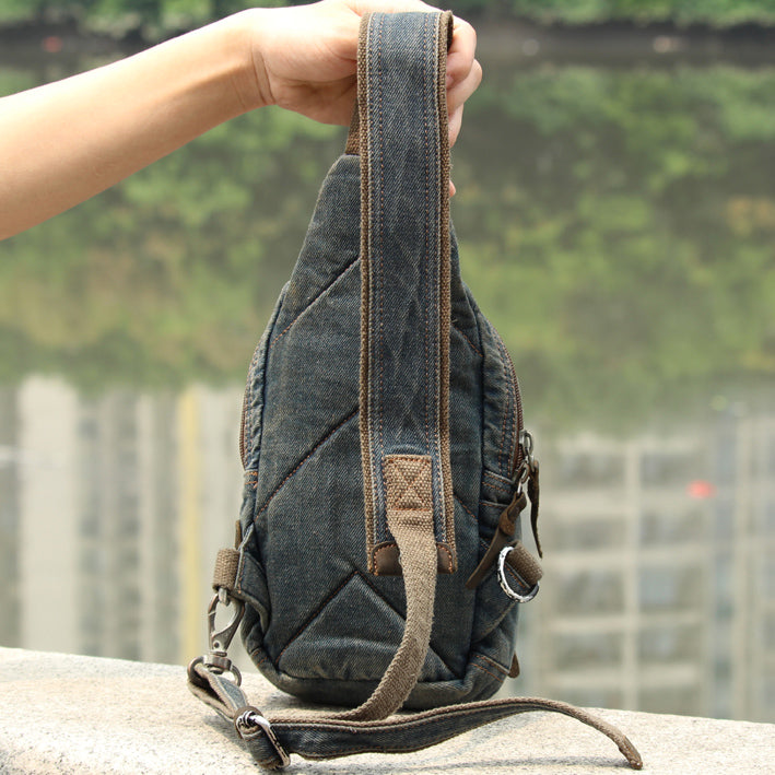 Fashion Denim Blue Mens Sling Bag Chest Bags Denim Sling Pack One Shoulder Backpacks For Men – uleather