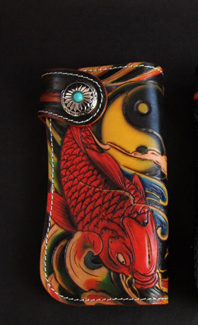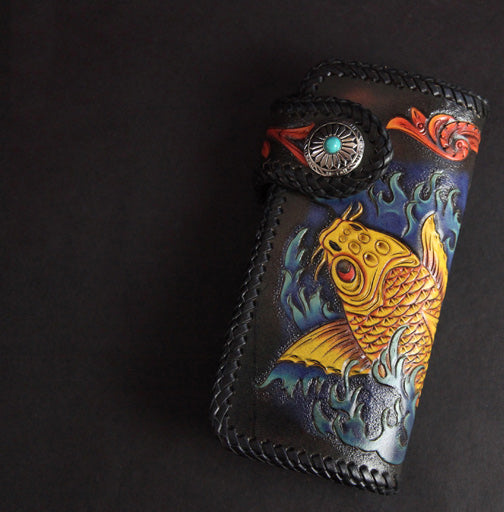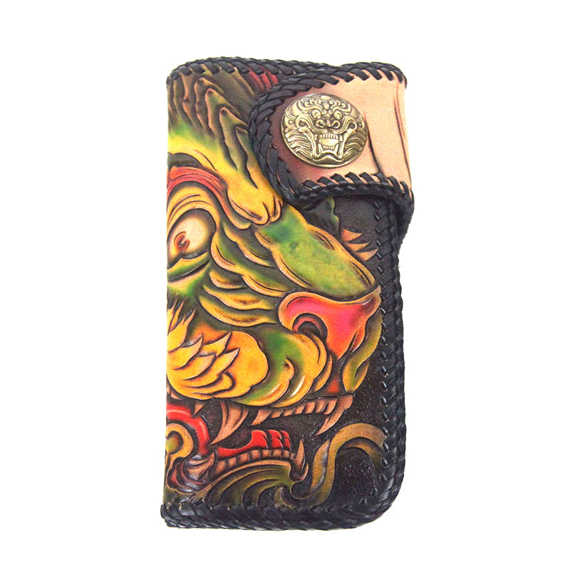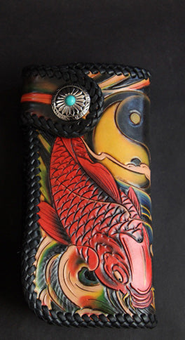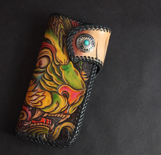 Style: Carved Handmade Leather Mens Long Wallets Card Wallet Clutch Wallet For Men