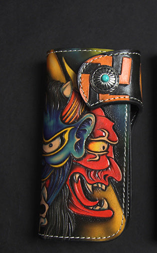 Tooled Handmade Black Leather Mens Long Chain Wallets Biker Wallet Biker Chain Wallet For Men – uleather