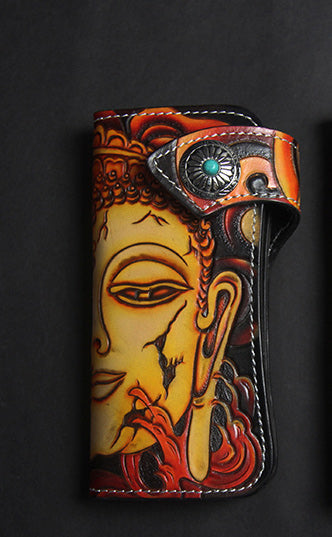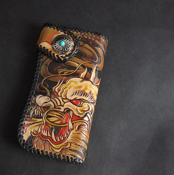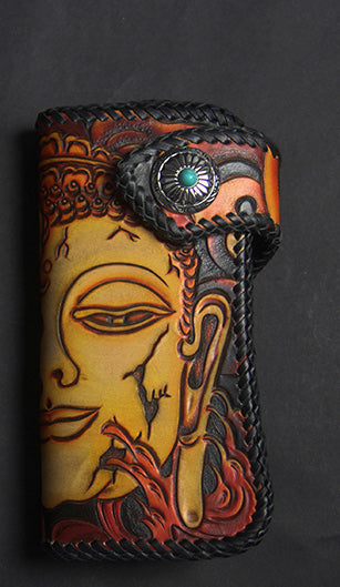Design: Carved Handmade Leather Mens Long Wallets Card Wallet Clutch Wallet For Men