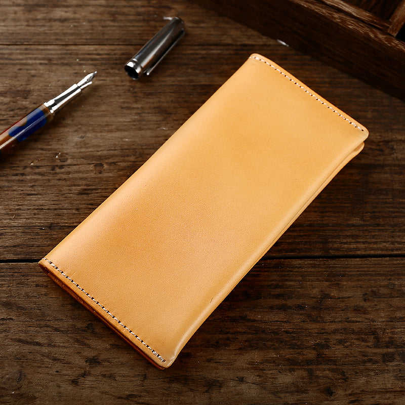 Casual Retro Leather Mens Wine Red Slim Long Wallet Light Beige Bifold Card Wallet Clutch Wallet For Men – uleather