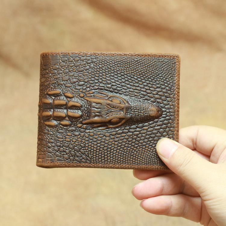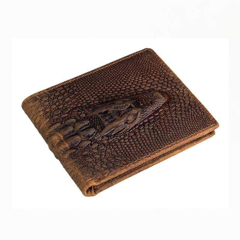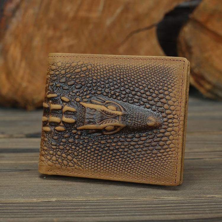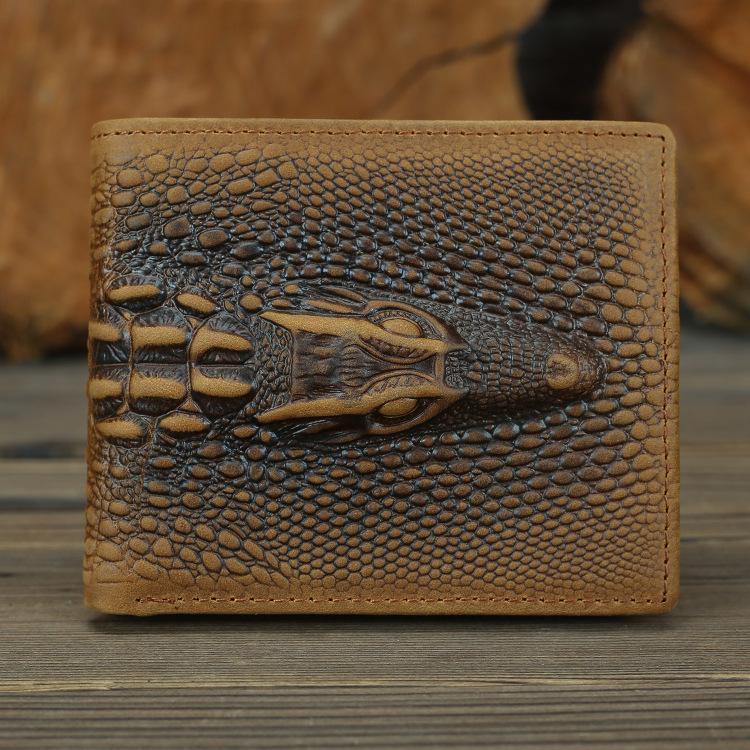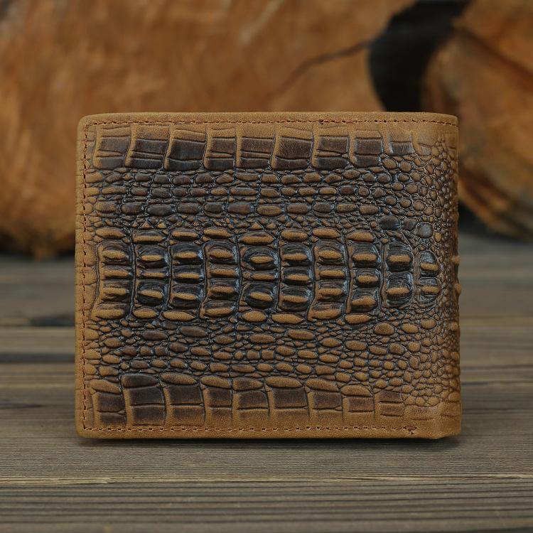 Design: Cool? Brown Crocodile Skin Bifold Small Wallet Leather Mens Yellow Brown billfold Small Wallet Card Wallet Coin Purse For Men