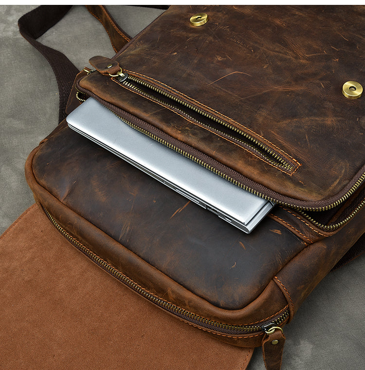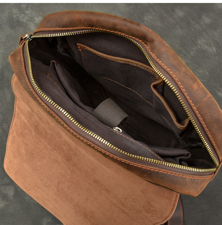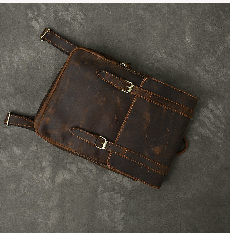 Cool Leather Mens 14' Dark Brown Hiking Backpack Travel Backpack College Backpack for Men