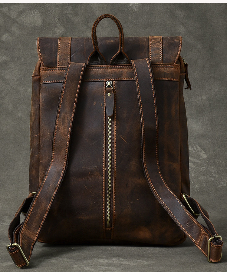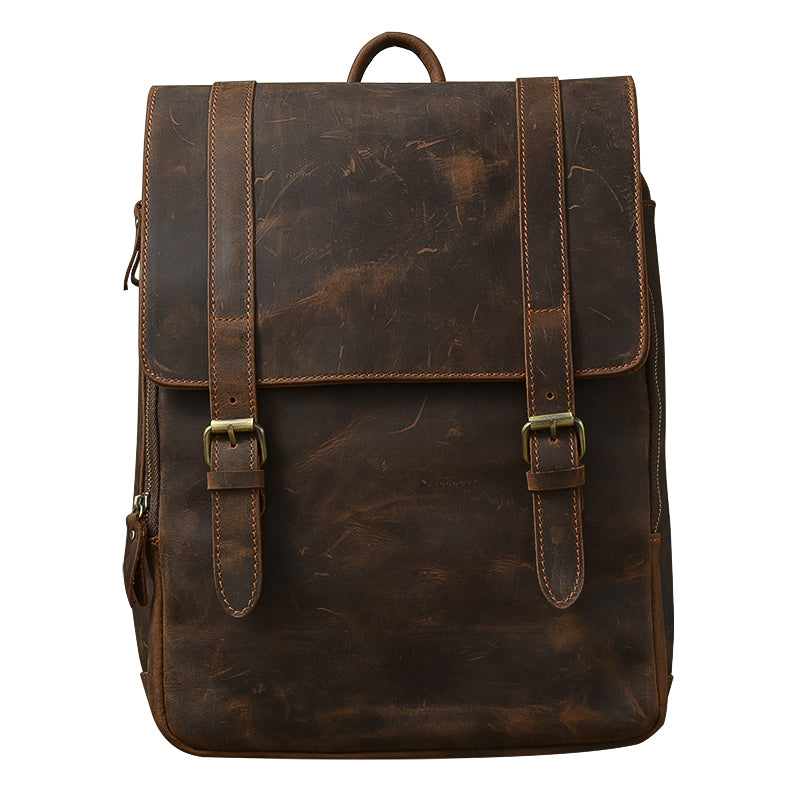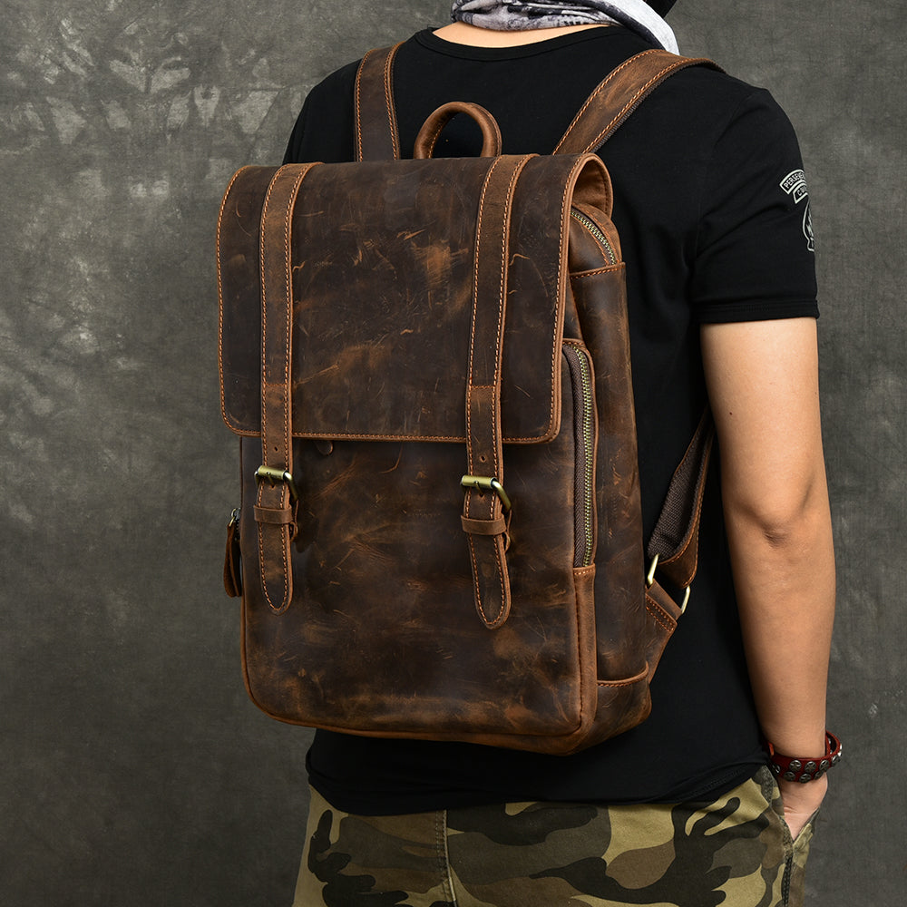 Cool Leather Mens 14' Dark Brown Hiking Backpack Travel Backpack College Backpack for Men – uleather