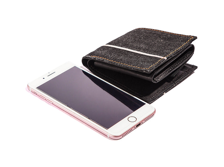 Handmade Cool Black Denim Mens Leather billfold Small Wallets Bifold Small Wallet For Men – uleather