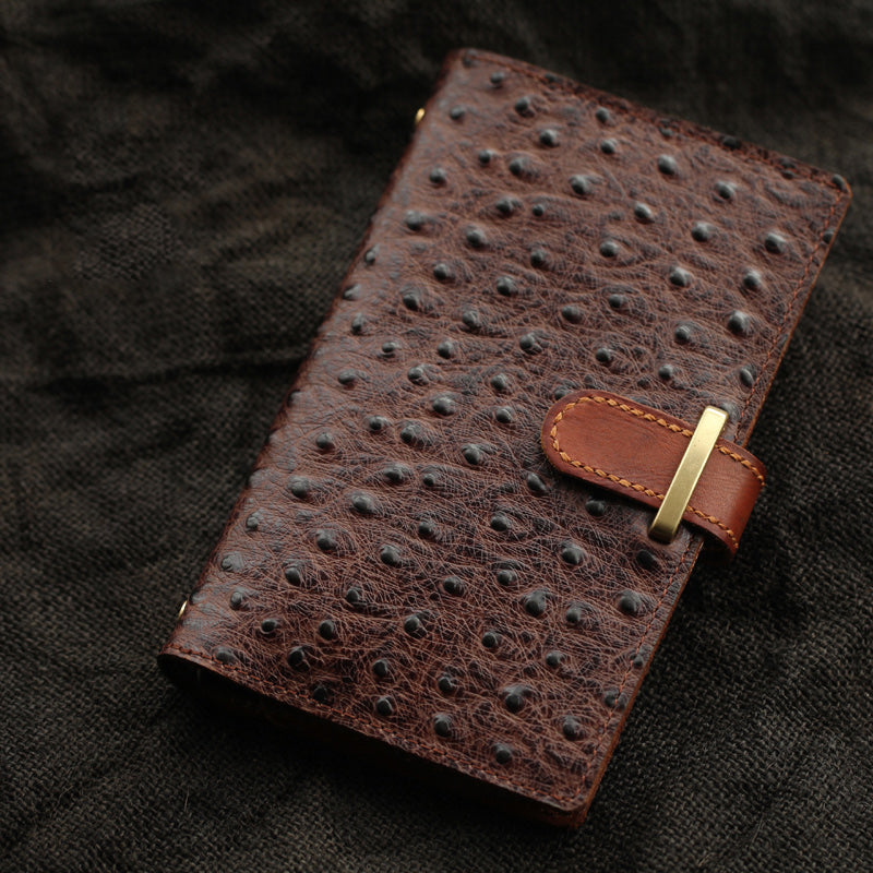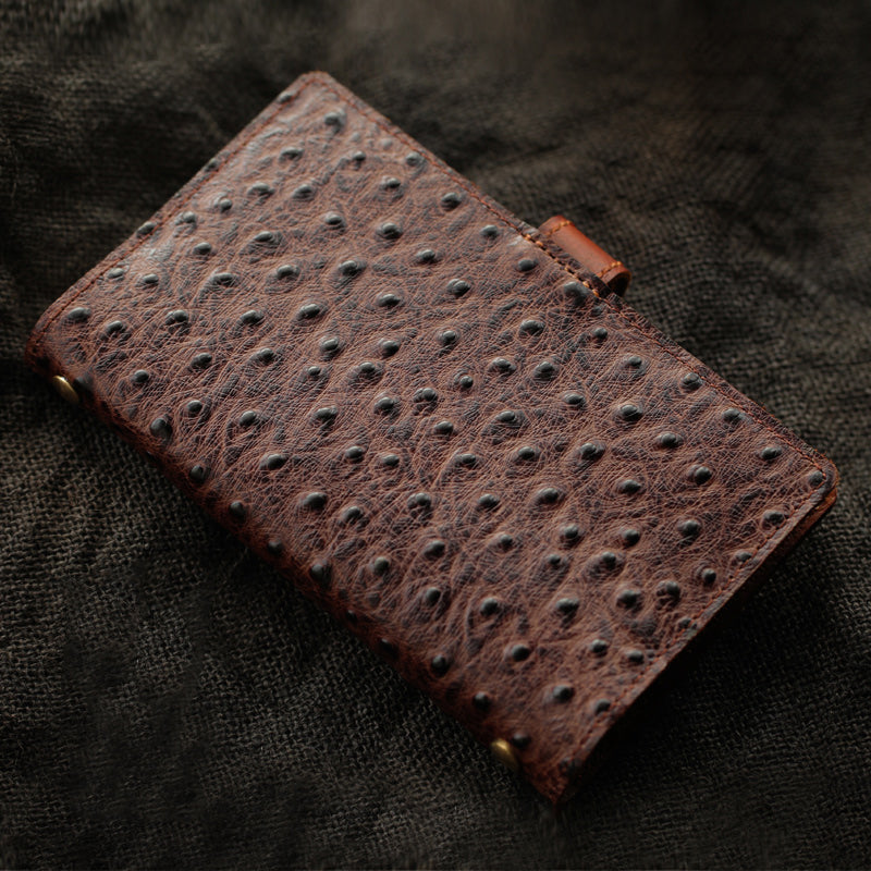 Creative Handmade Ostrich Pattern Leather A6 Travel Notepad Brown Notebook For Men – uleather