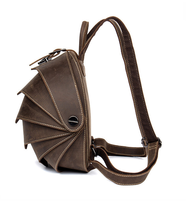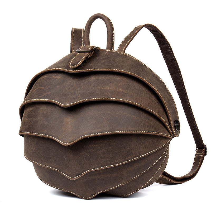 Dark Brown Unique Mens Leather 10-inch Small Backpacks Cool Beetle Backpacks Round Backpack for men – uleather