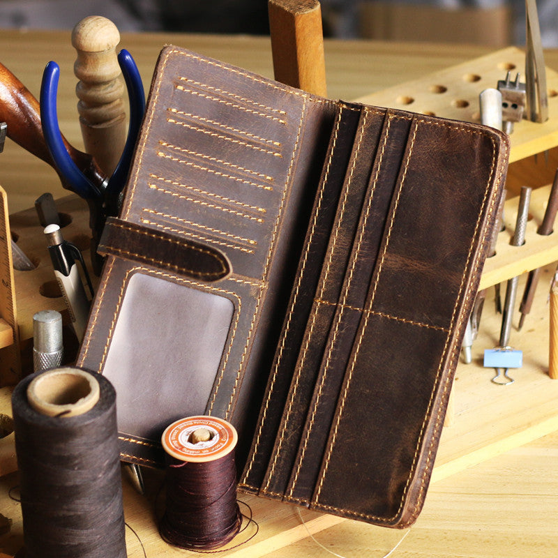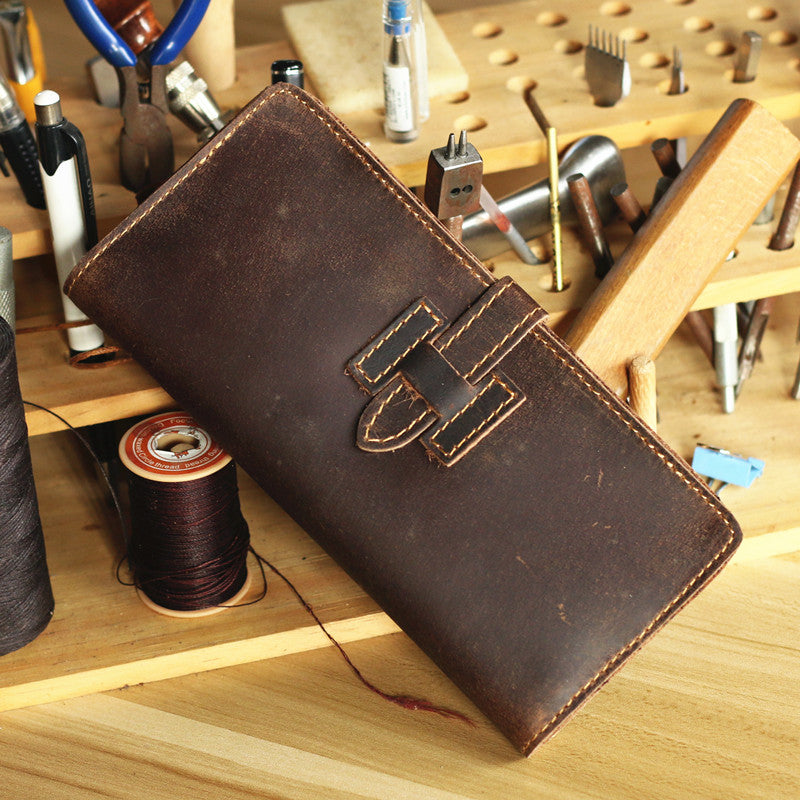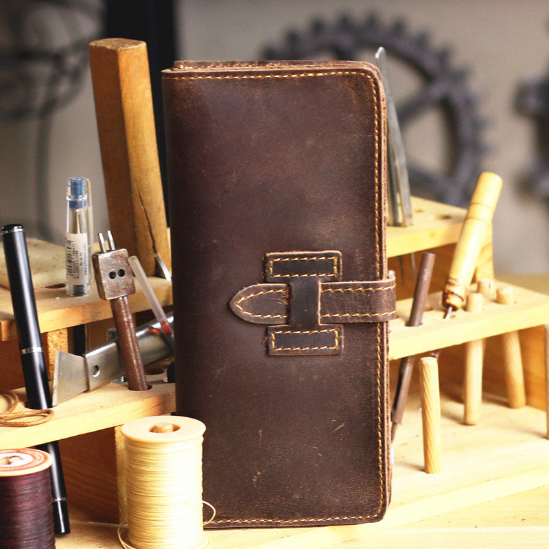 Handmade Dark Brown Leather Mens Bifold Long Wallet Cards Long Wallet For Men – uleather
